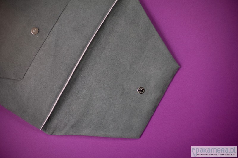 Duża torebka kopertowa o klasycznym kroju.Bardzo pojemna,uszyta z ekozamszu.Odpowiednio usztywniona. Zapinana na zapięcie magnetyczne,w środku dodatkowa kieszonka na drobiazgi. Kolor szary. Wymiary 23x33