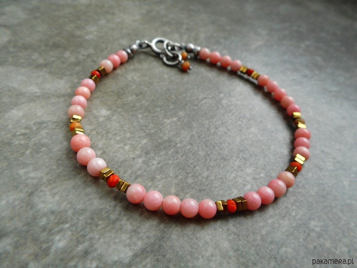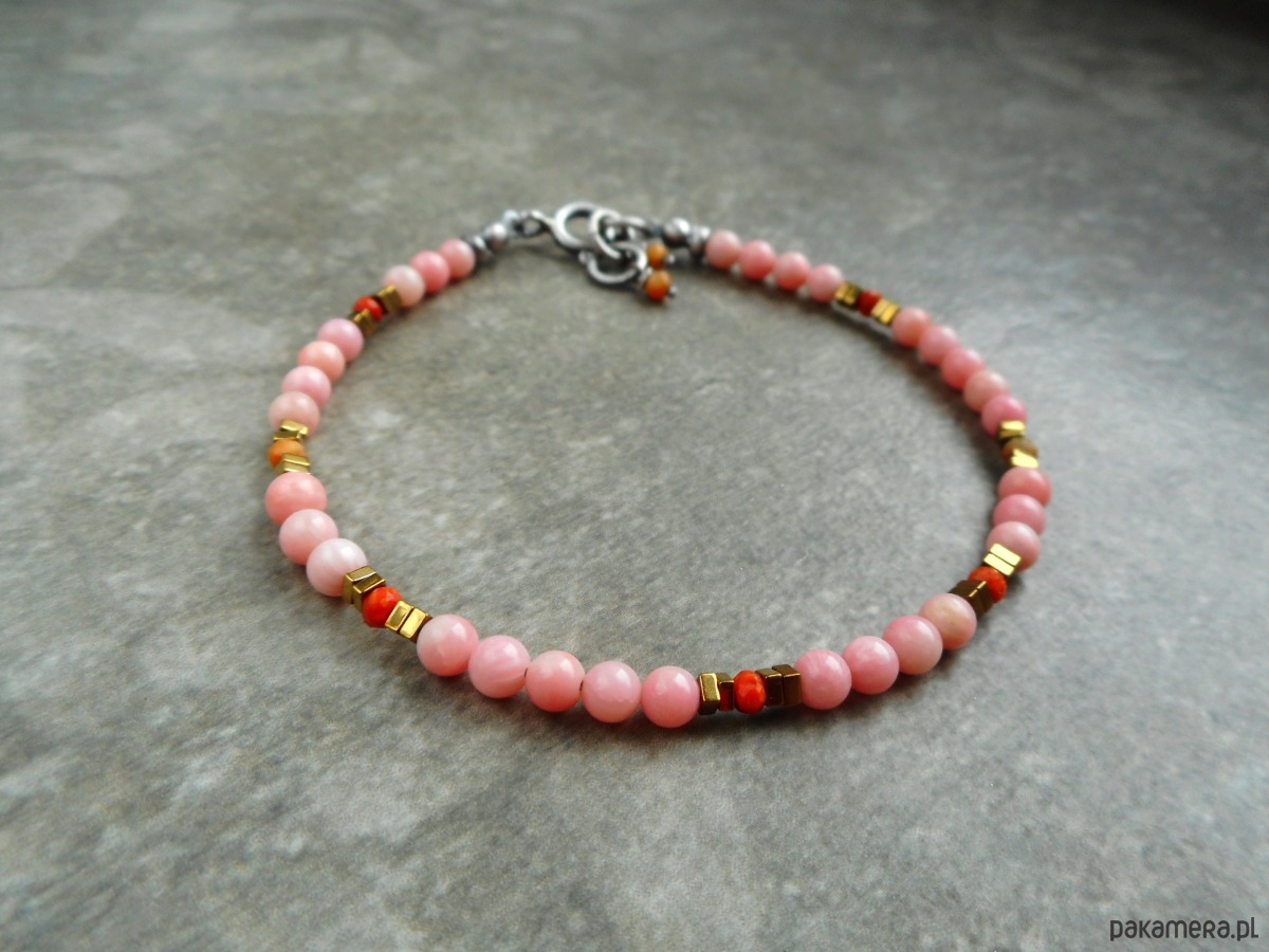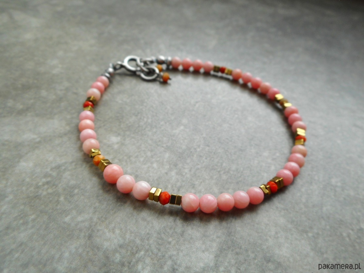 Delikatna bransoletka z kamieni naturalnych i szlachetnego srebra; kolorowa i efektowna, w letnim klimacie.