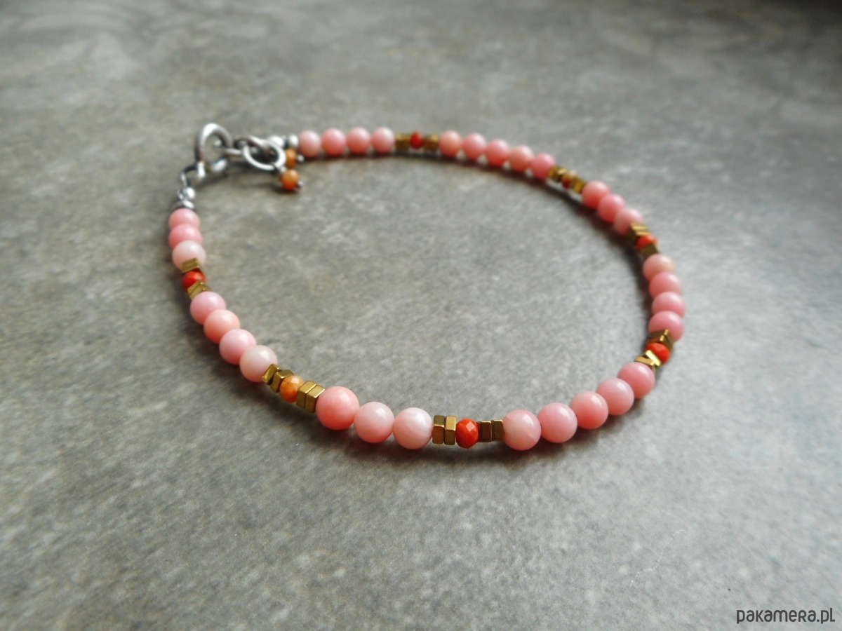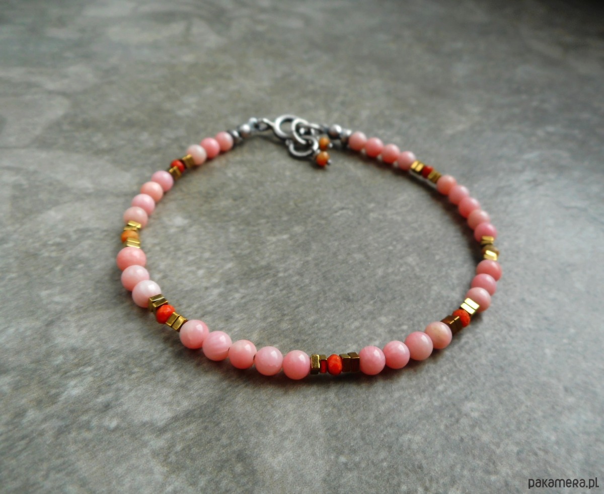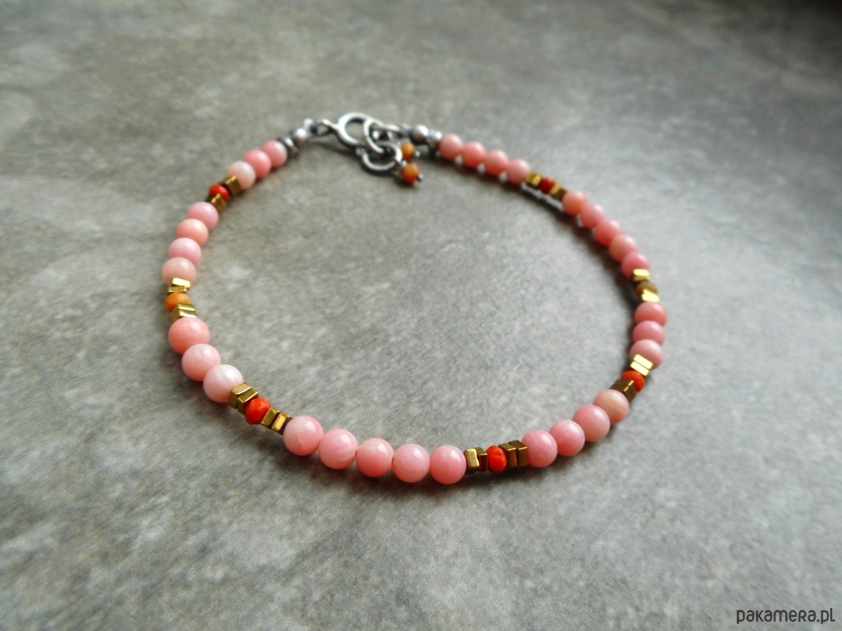 Delikatna bransoletka z kamieni naturalnych i szlachetnego srebra; kolorowa i efektowna, w letnim klimacie.