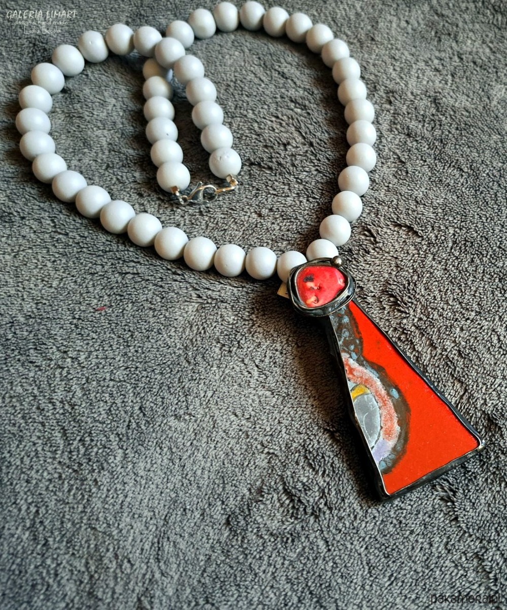 Koral i ręcznie malowana ceramika w wyjątkowym naszyjniku handmade prezent lux