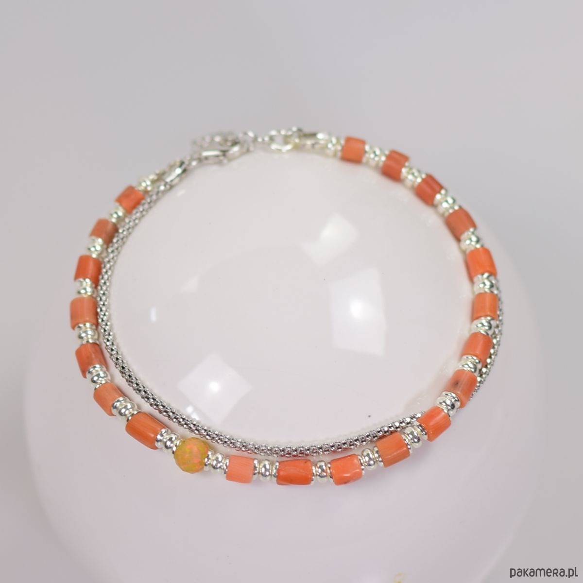 Koral szlachetny z opalem etiopskim - delikatna bransoletka