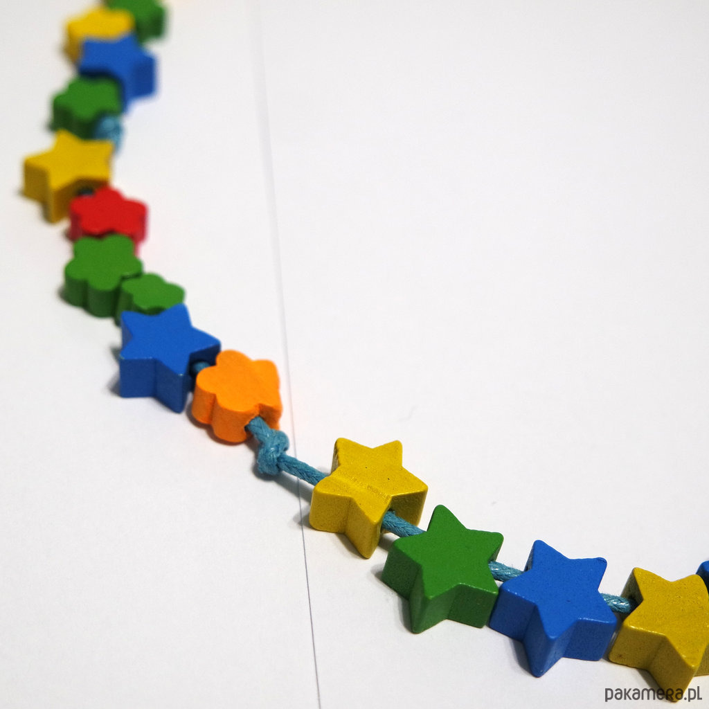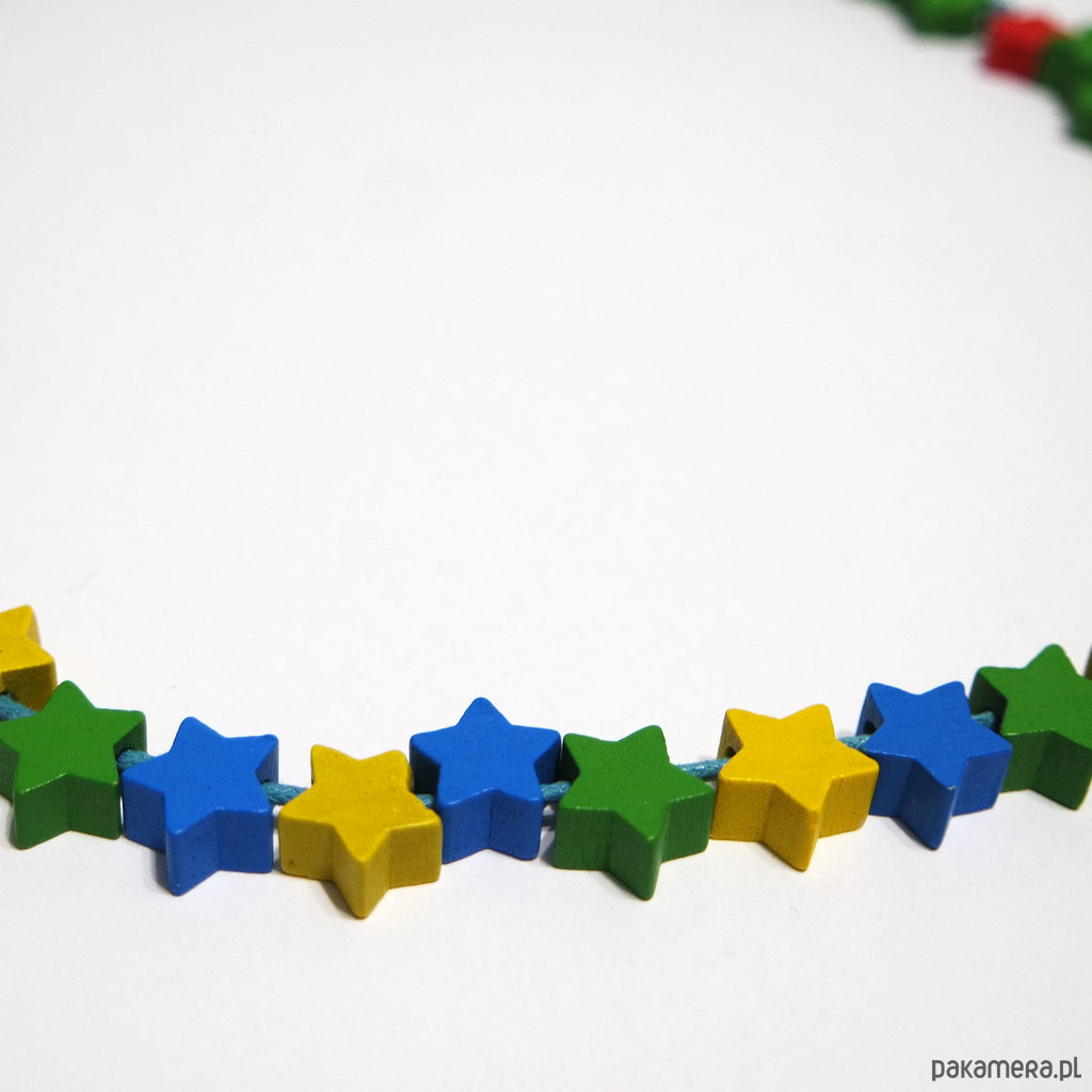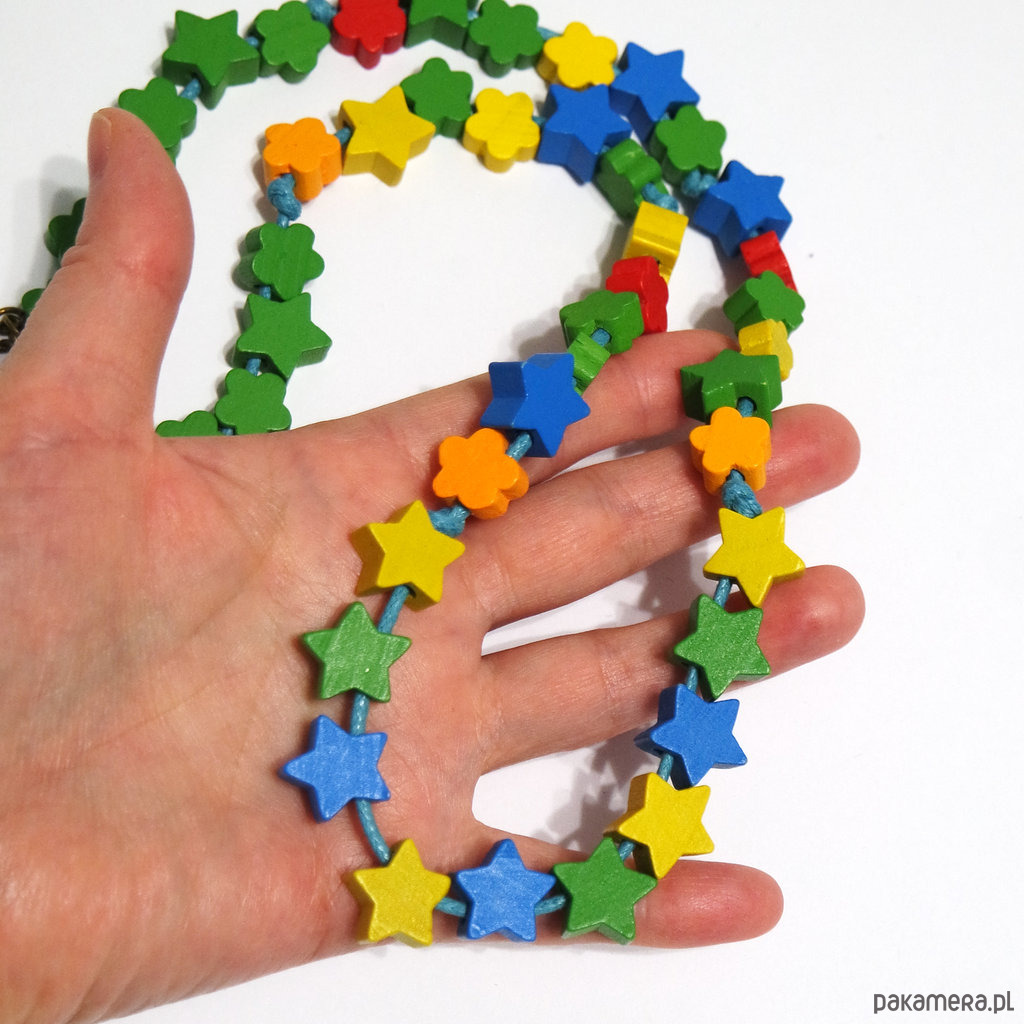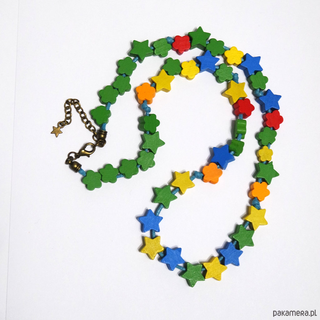 Naszyjnik wykonany z koralików drewnianych nawleczonych na woskowany sznurek.