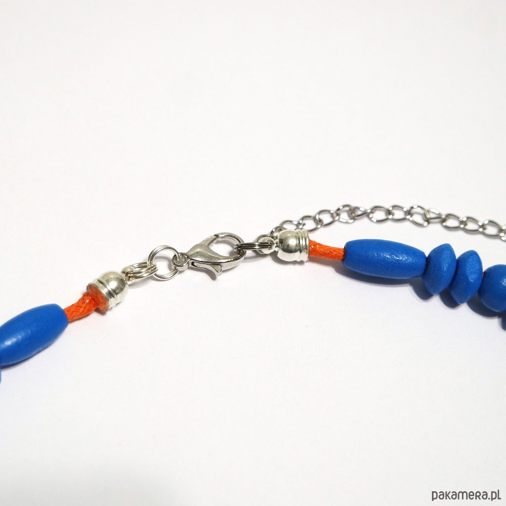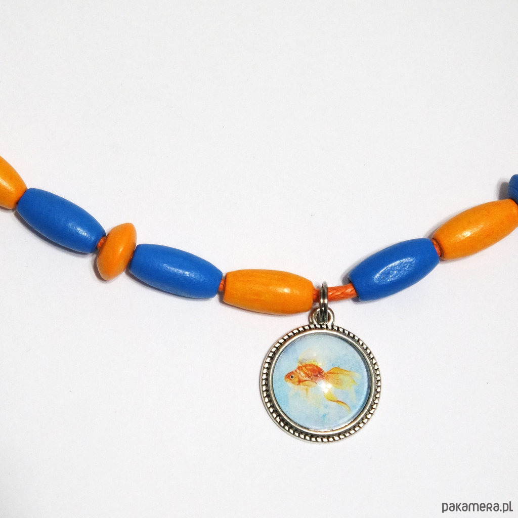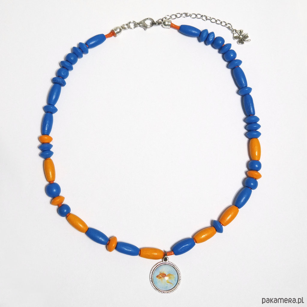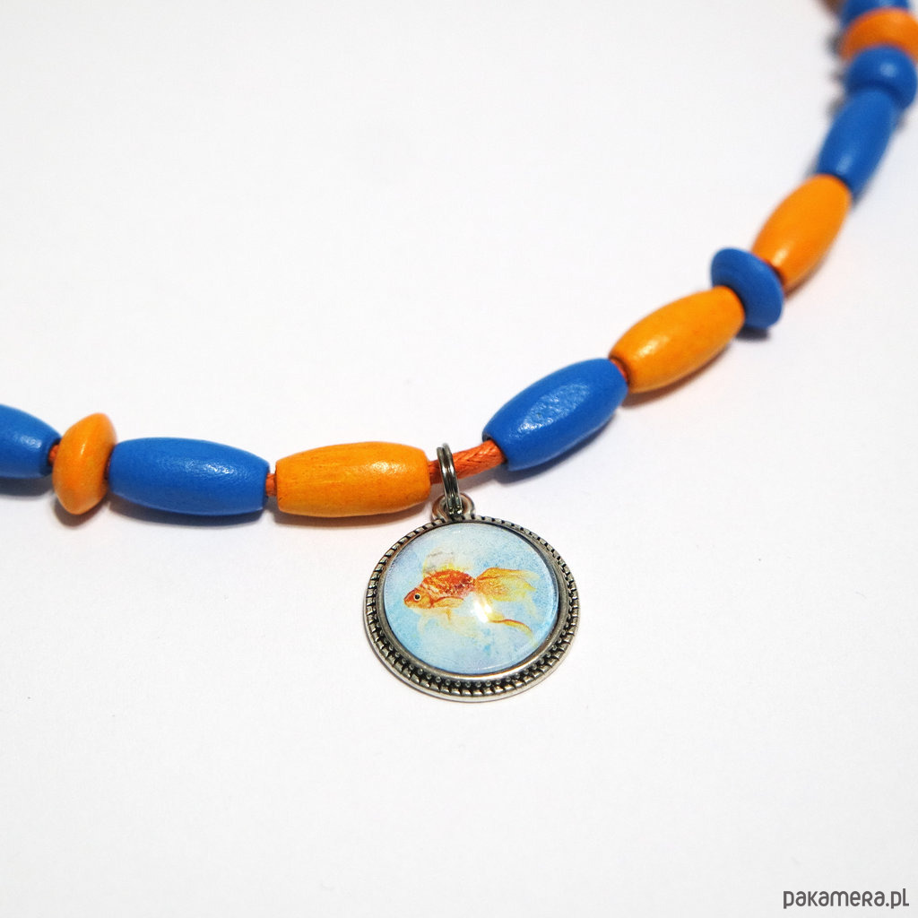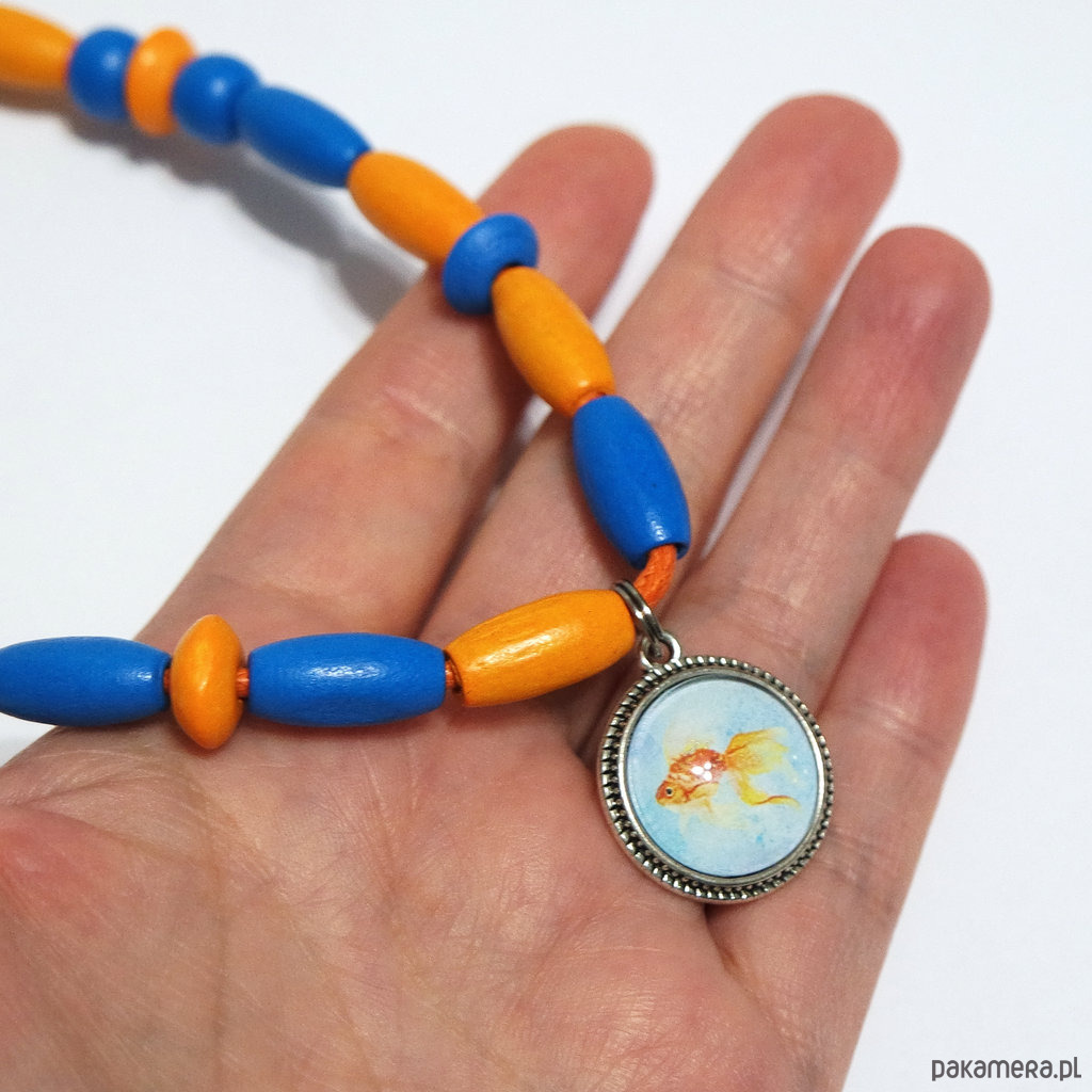Korale pomarańczowe, niebieskie drewniane - złota rybka