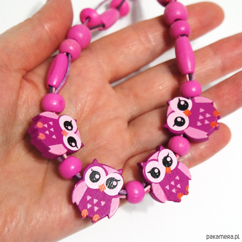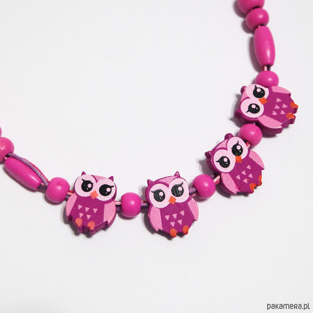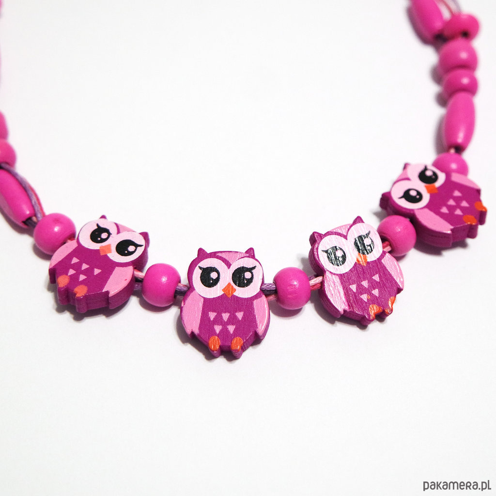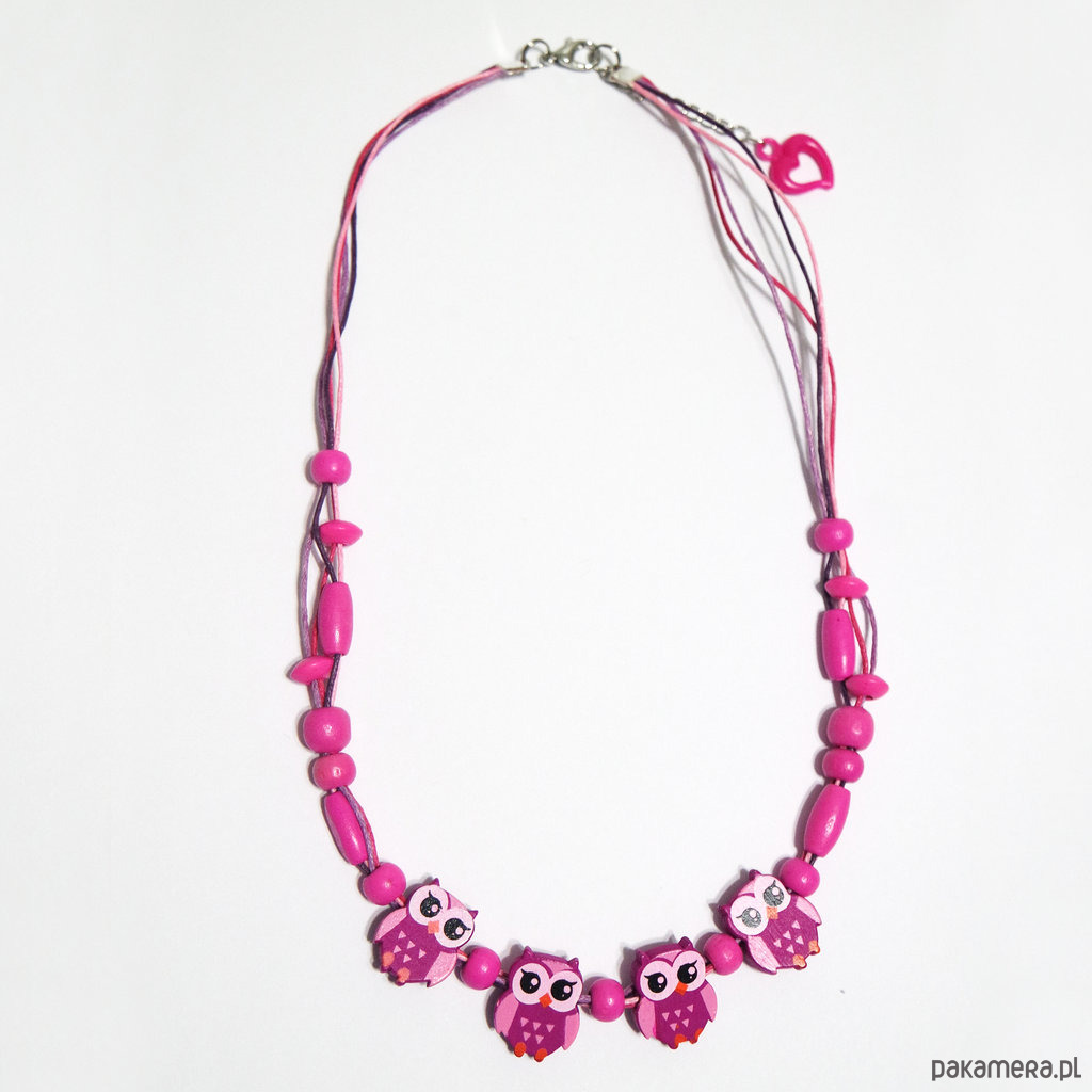 Naszyjnik wykonany z koralików drewnianych nawleczonych na woskowane sznureczki.