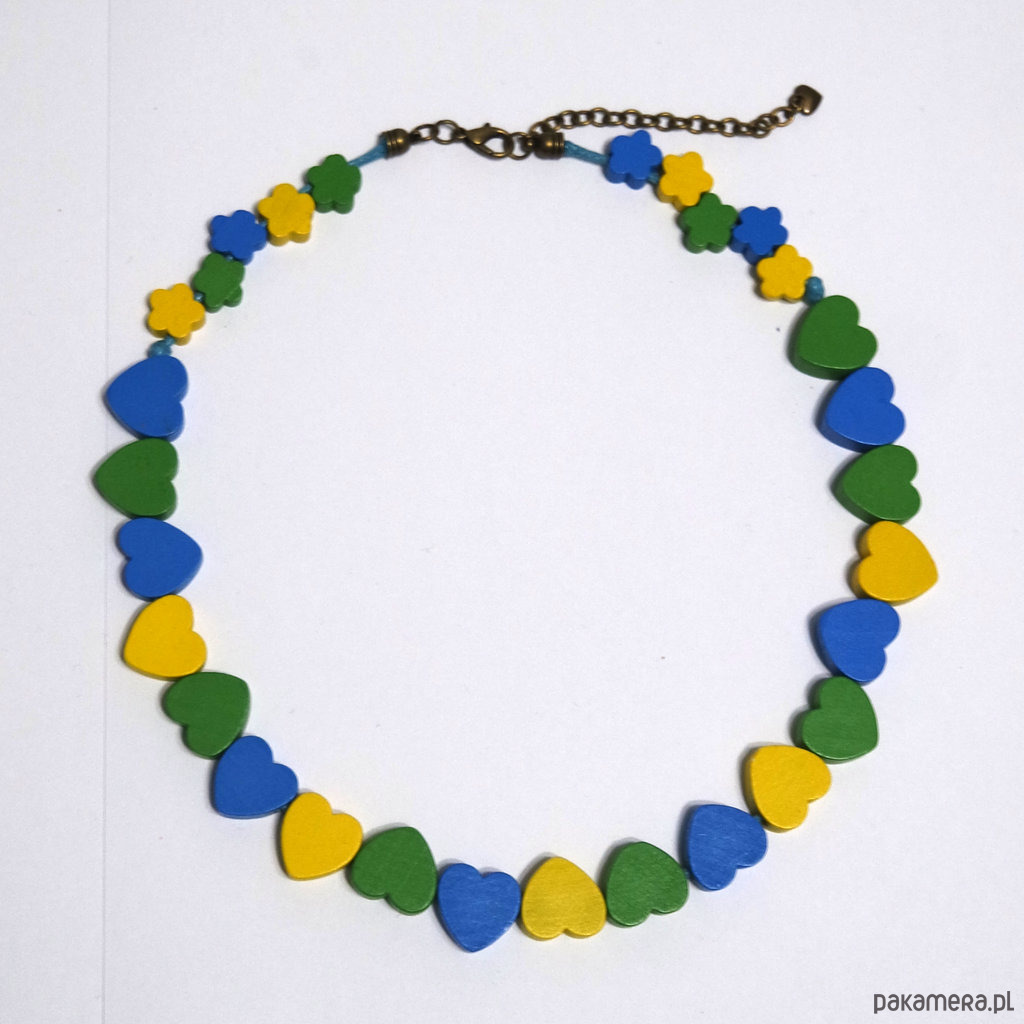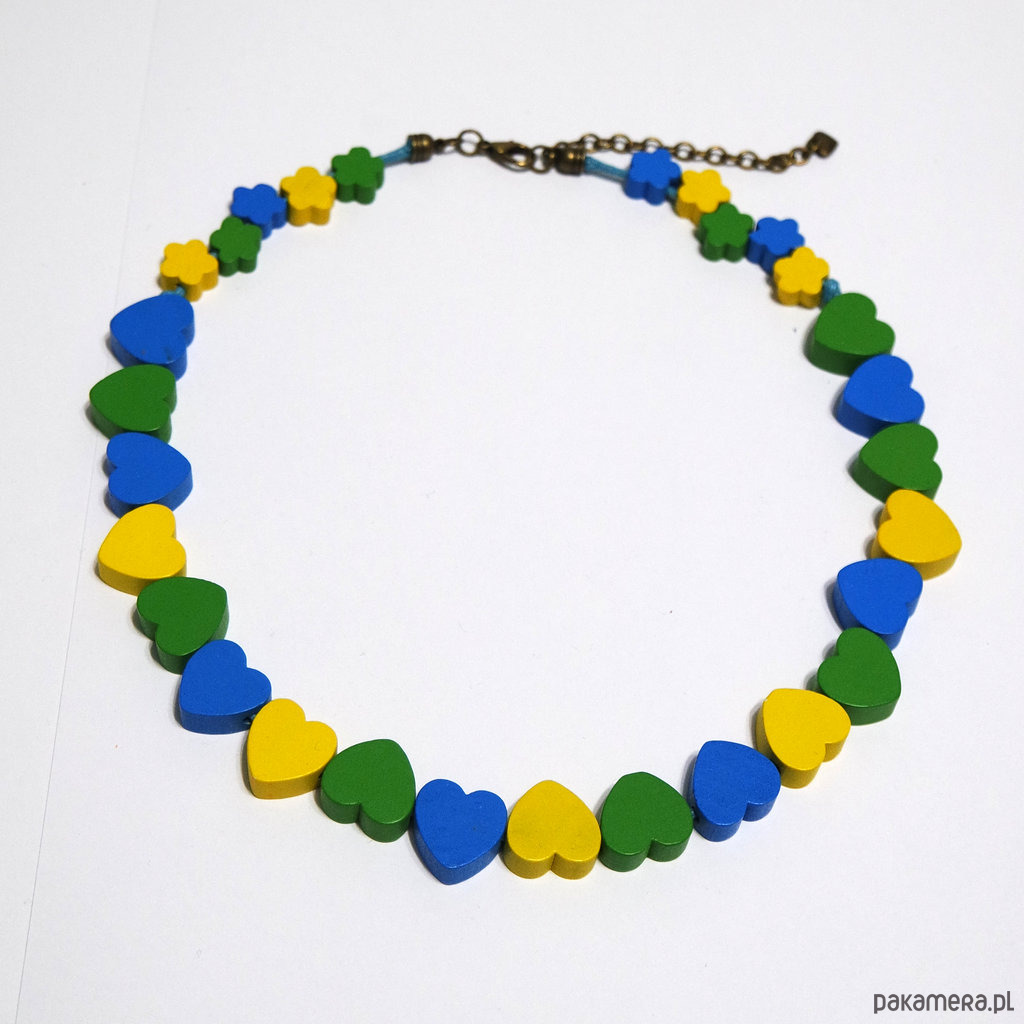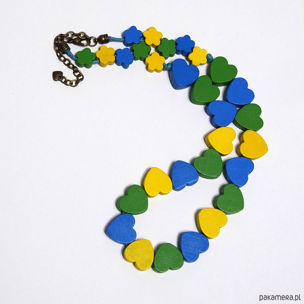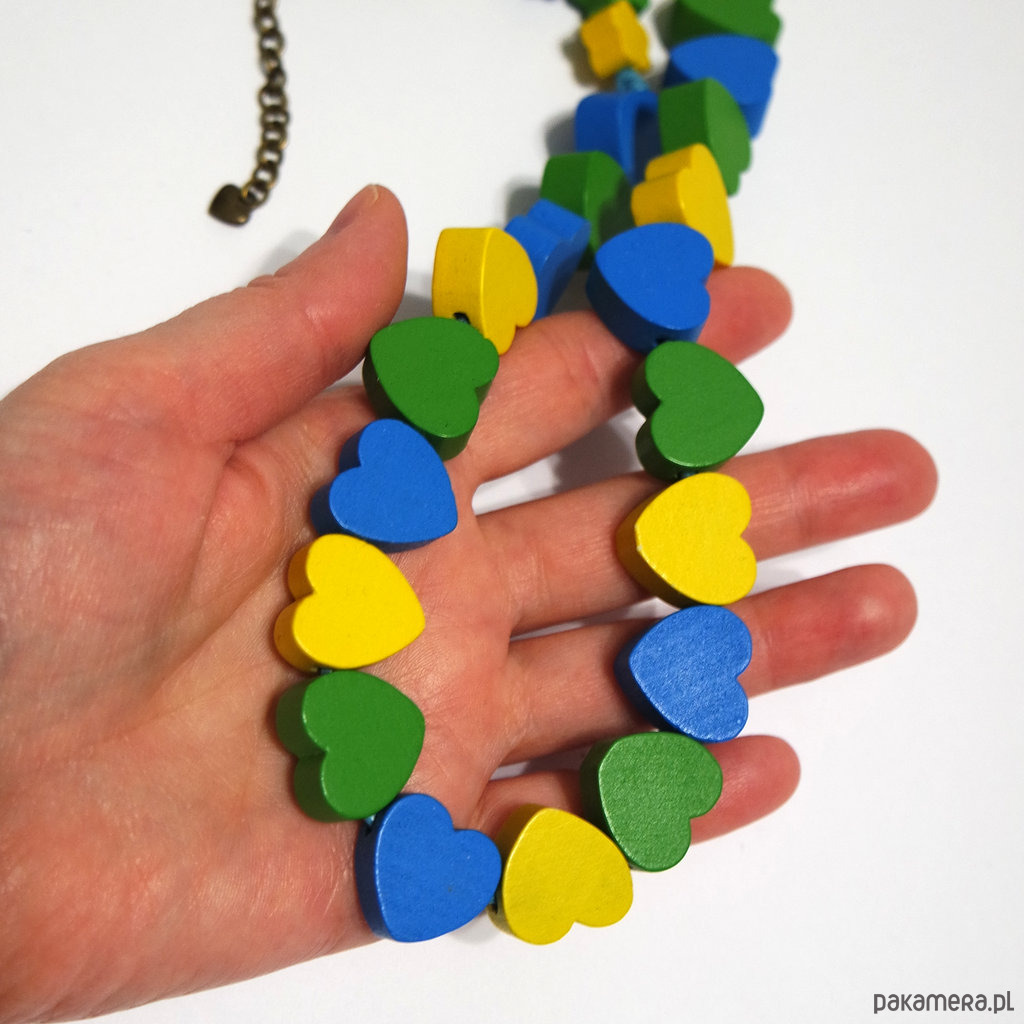 Korale - Serca - drewniane, krótkie