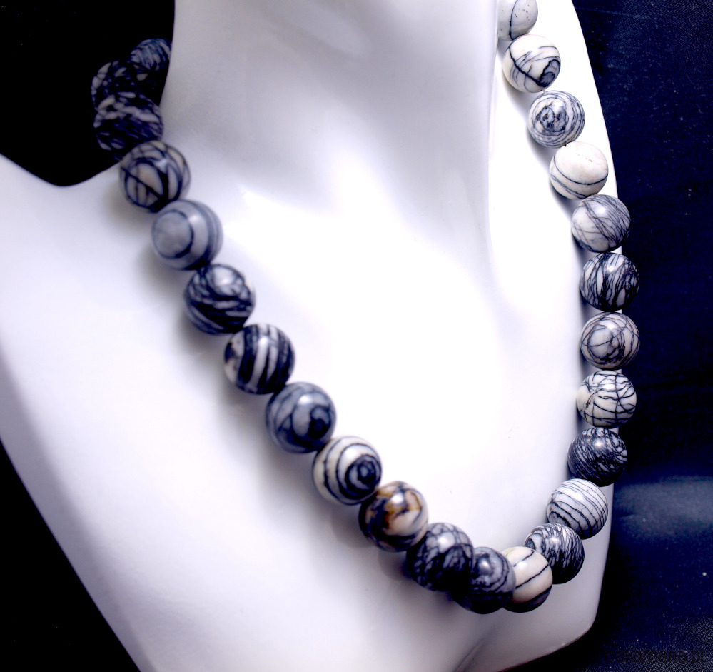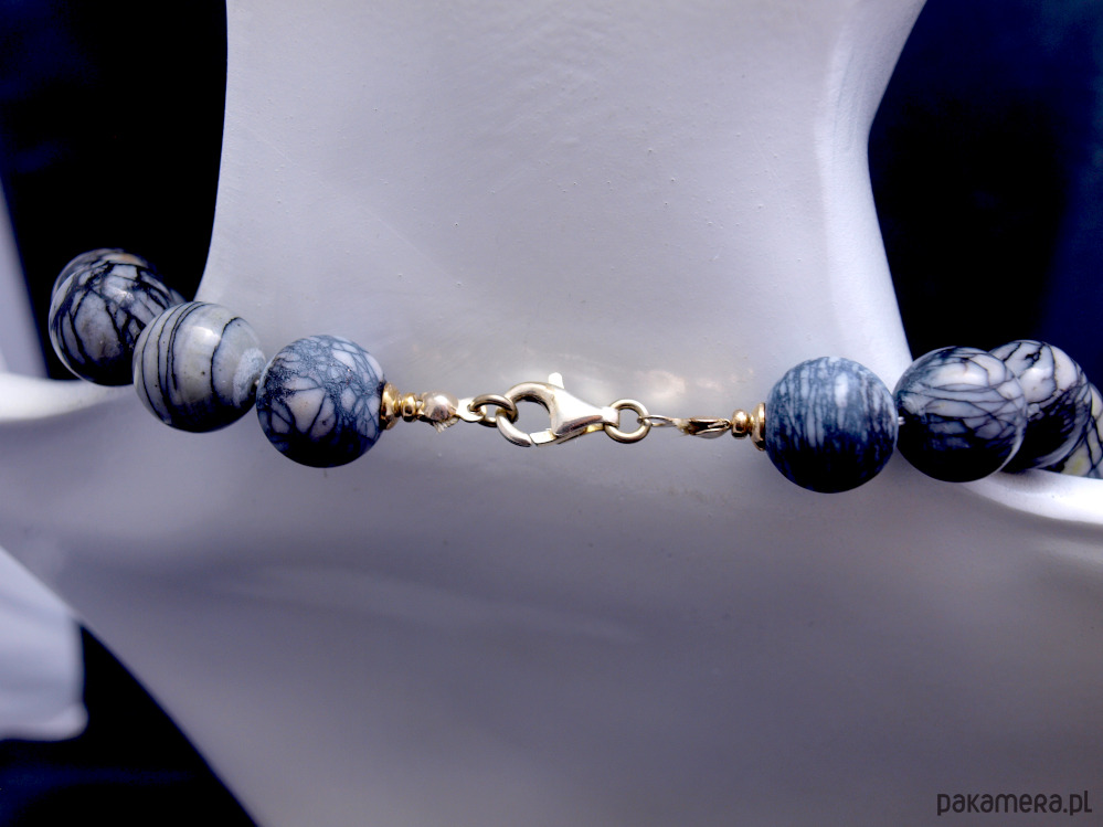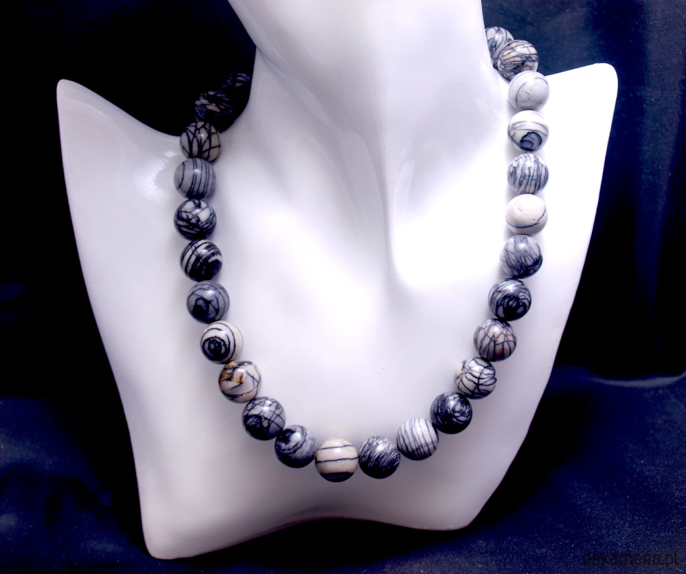 korale w odcieniu szarości i czerni o długości 40 cm. Korale posiadają zapięcie.
