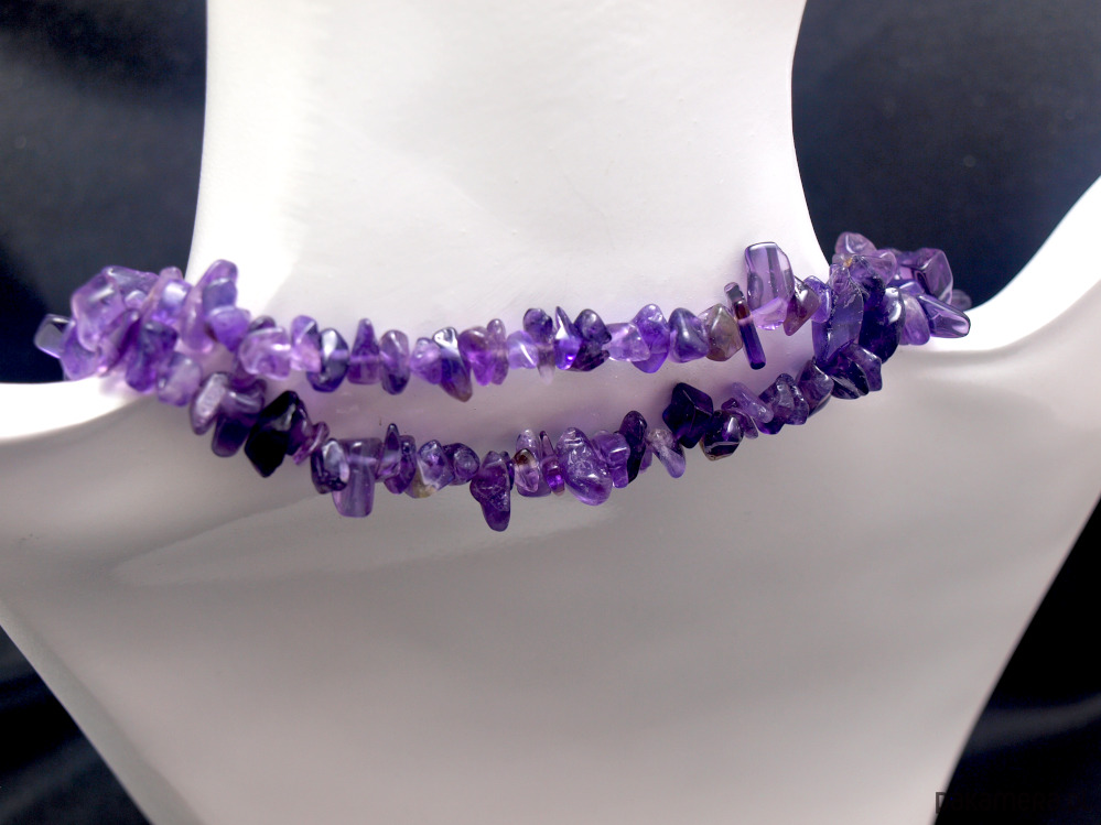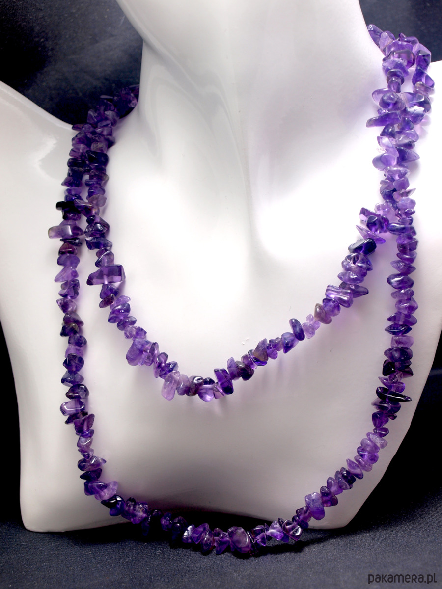 Długie korale z naturalnego ametystu w kolorze fioletowym.