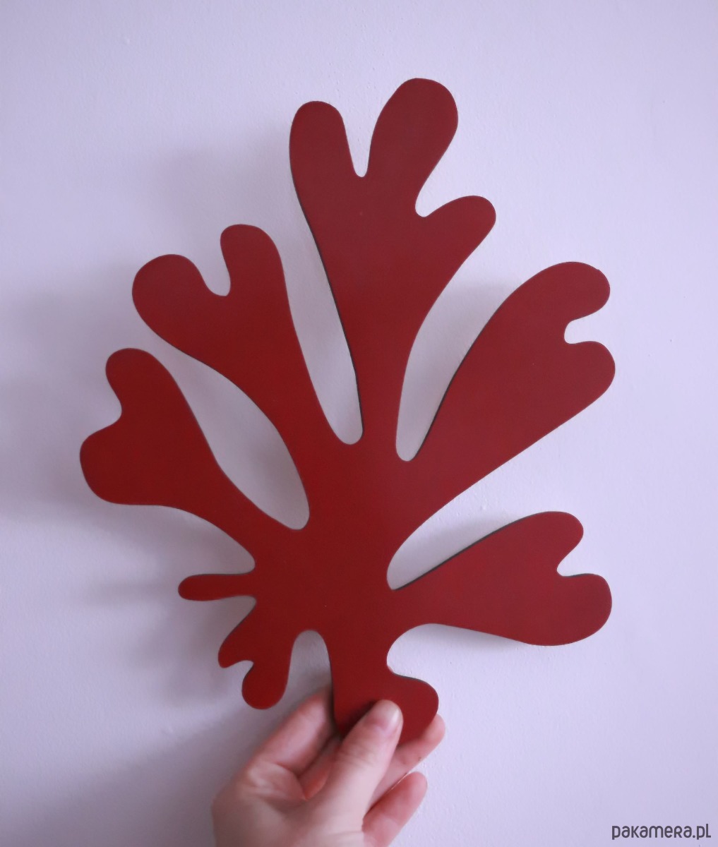 Koralowce zrobione są z 6mm sklejki. Wysokość 26 cm, szerokość 21. Malowane farbami akrylowymi.
