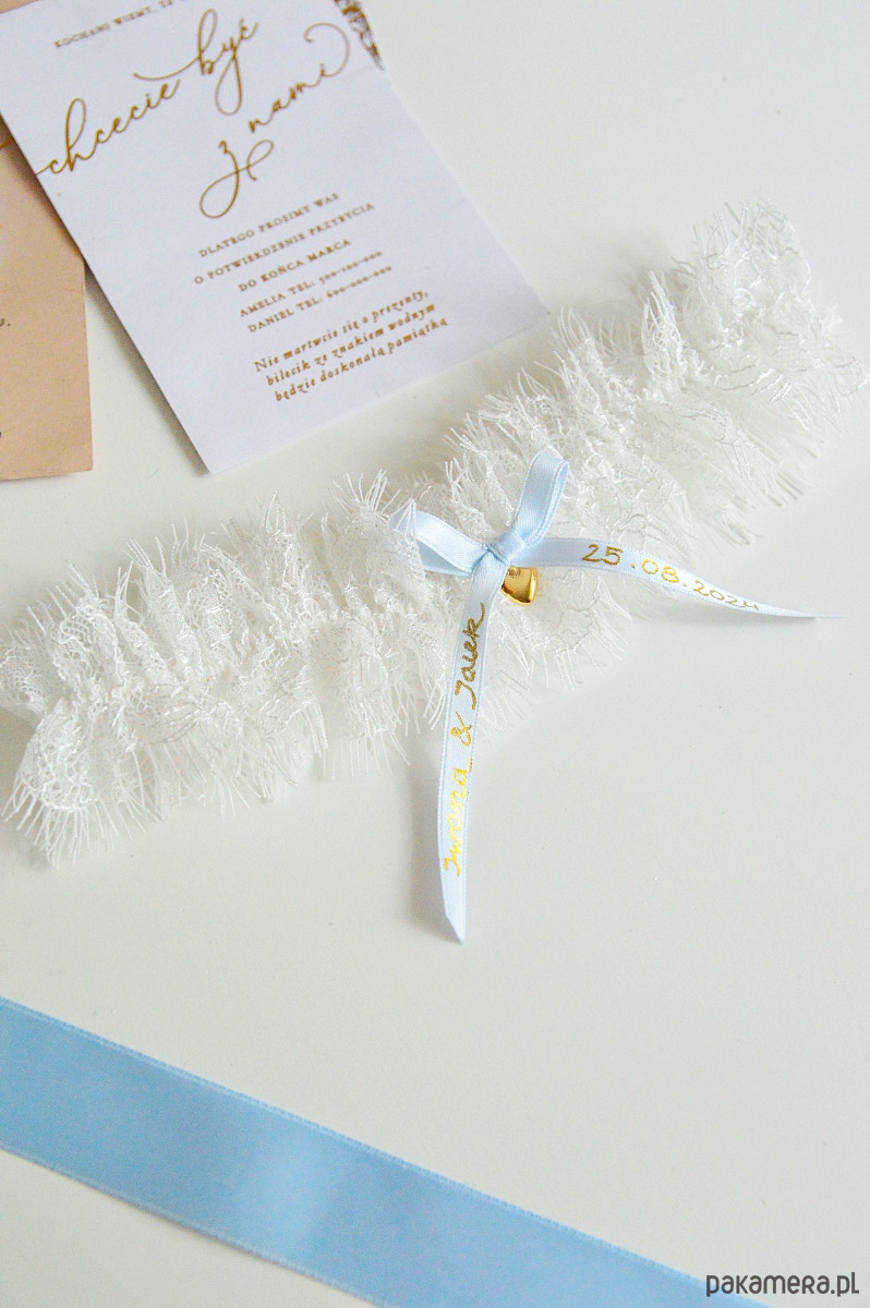 Podwiązka dostępna z personalizacją lub bez. Dowolną personalizację proszę wpisać w uwagach lub przesłać drogą mailową.