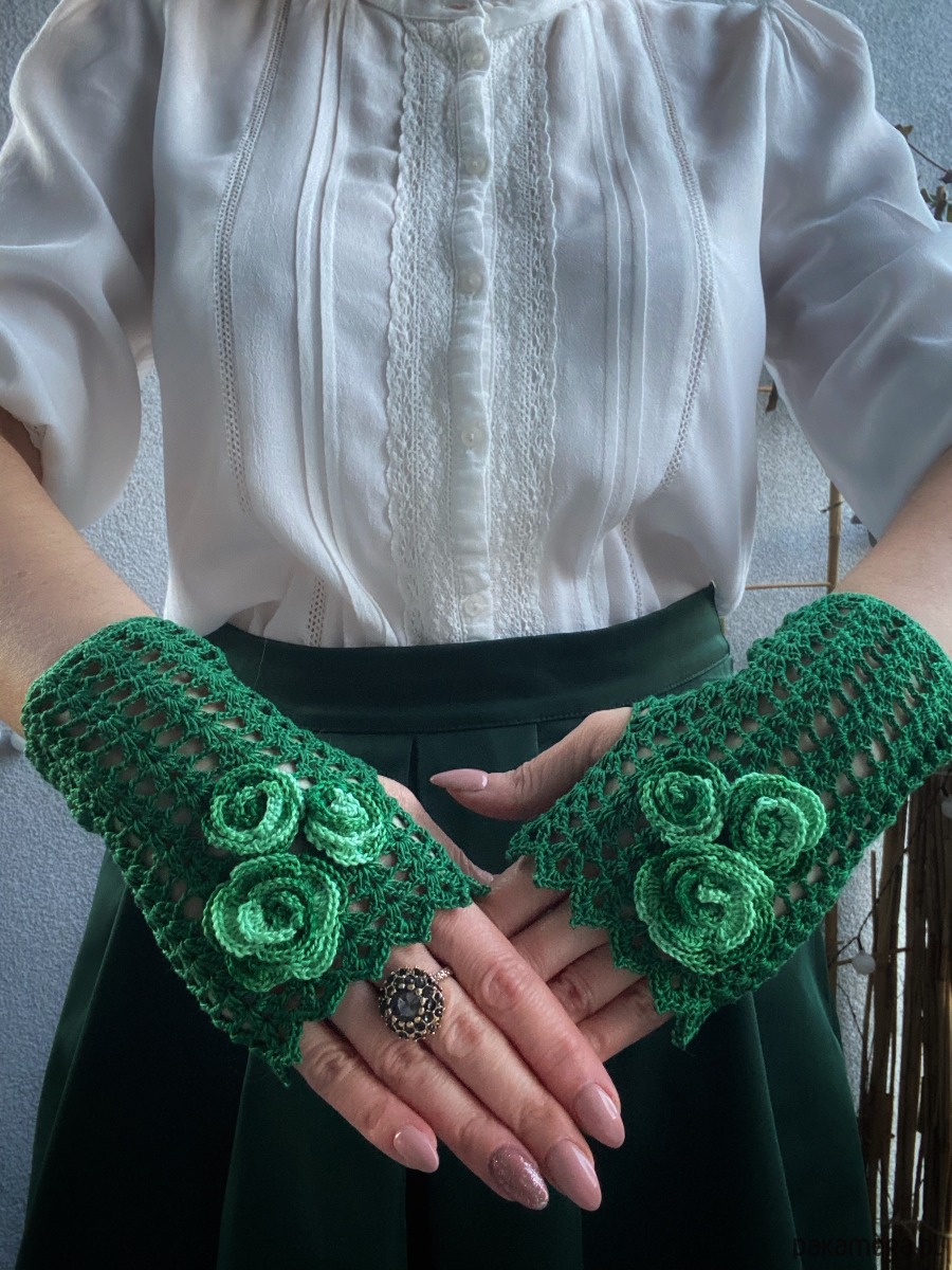 🌿Eleganckie i romantyczne mitenki koronkowe w zielonym kolorze.