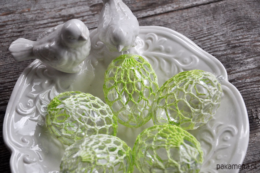 Piękne i wyjątkowe, koronkowe pisanki na akrylowej bazie wysokiej przejrzystości (wygląd szkła); w zestawie 5szt; wielkość ok 8cm; kolor koronki- cieniowana jasna zieleń; jajeczka posiadaja zawieszki; zapraszam