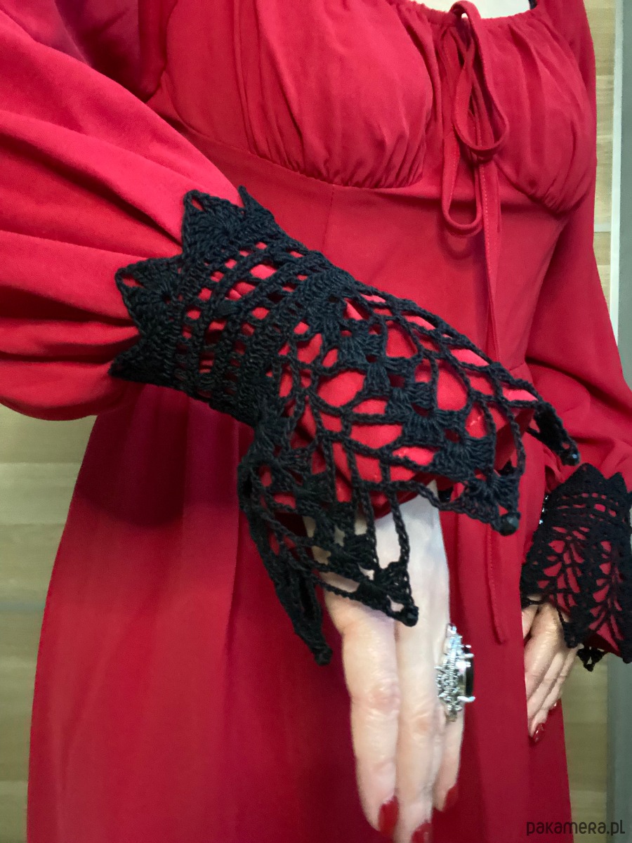 Cudowne ręcznie robione na szydełku,w stylu vintage, koronkowe rękawki w kolorze czarnym. Zapinane na śliczne guziczki.Oryginalny dodatek do Twojej stylizacji.Można nosić na mankietach koszuli sukienki lub bezpośrednio na nadgarstkach. Gotycki szyk dla koneserów.
