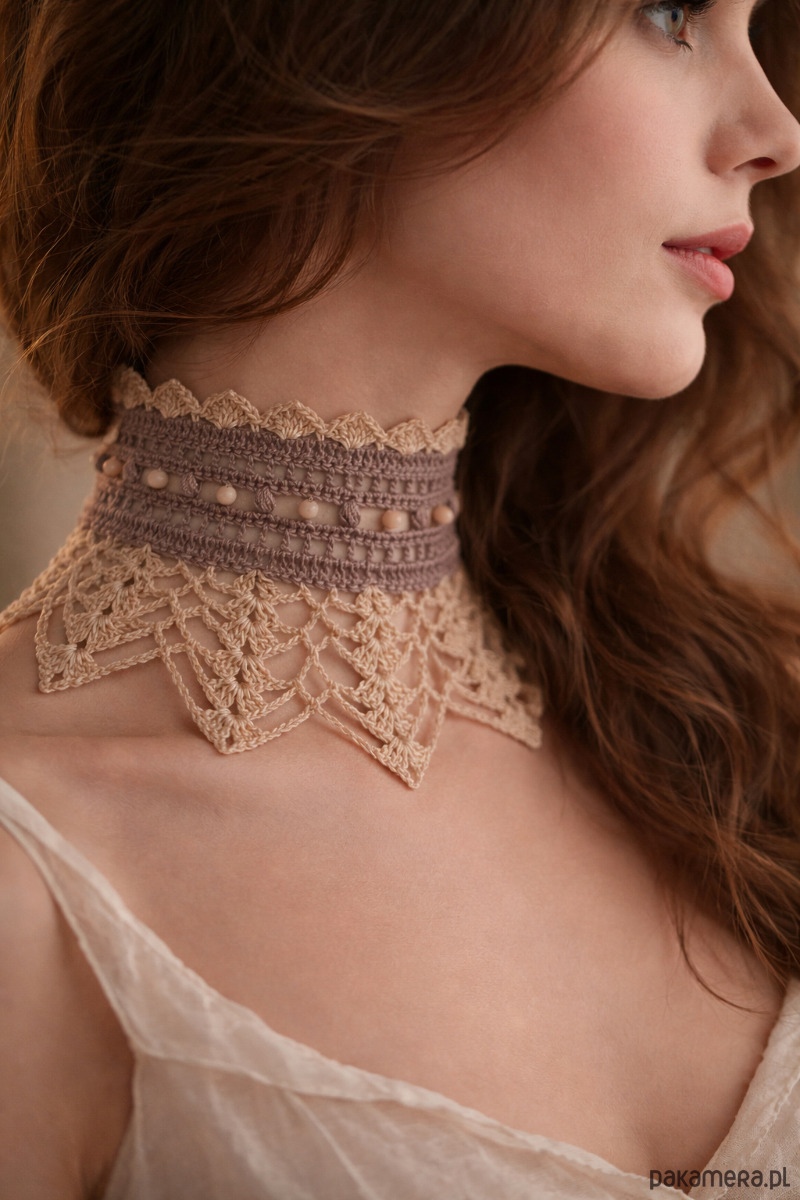 ✨Koronkowy naszyjnik choker w pięknym połączeniu kolorów beż i krem, inspirowany romantyczną estetyką vintage. Delikatny i romantyczny dodatek, który odmienia stylizację✨
