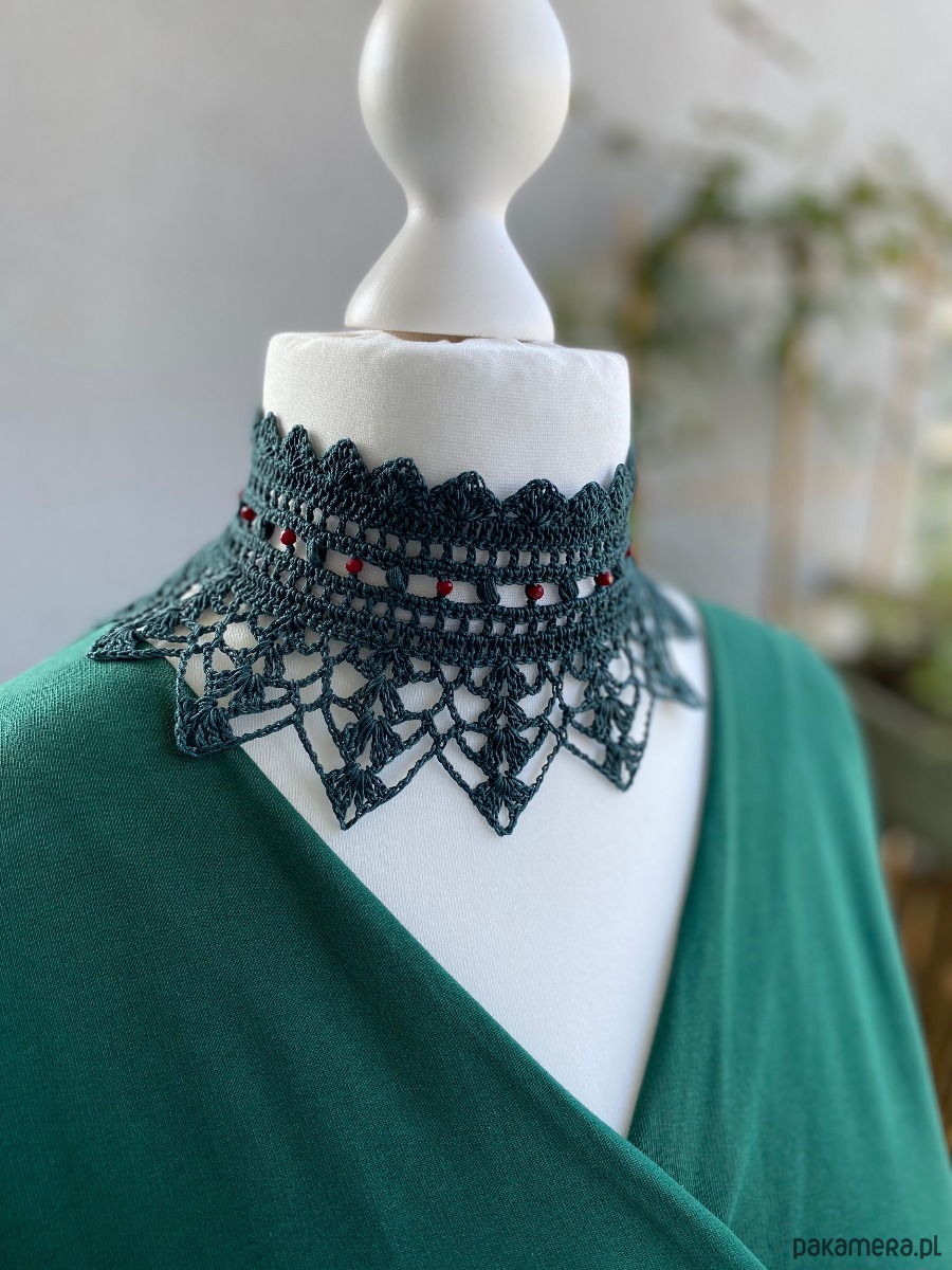 Prześliczy koronkowy naszyjnik jagody w lesie‼️ zielony leśny naszyjnik z drobnymi czerwonymi koraliczkami❤️Pasuje do wielu stylizacji i kolorów.