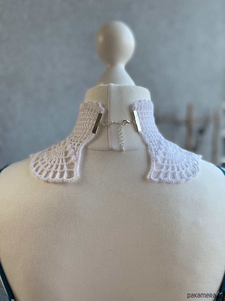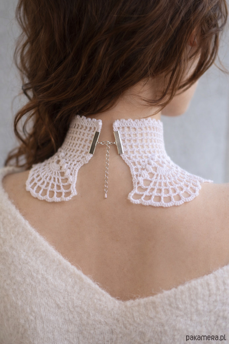 Ręcznie wykonany z bawełnianego kordonka układa się miękko wokół szyi, tworząc efekt subtelnej ramy dla dekoltu. Inspirowany dawnymi kołnierzykami, w nowoczesnym, minimalistycznym wydaniu.