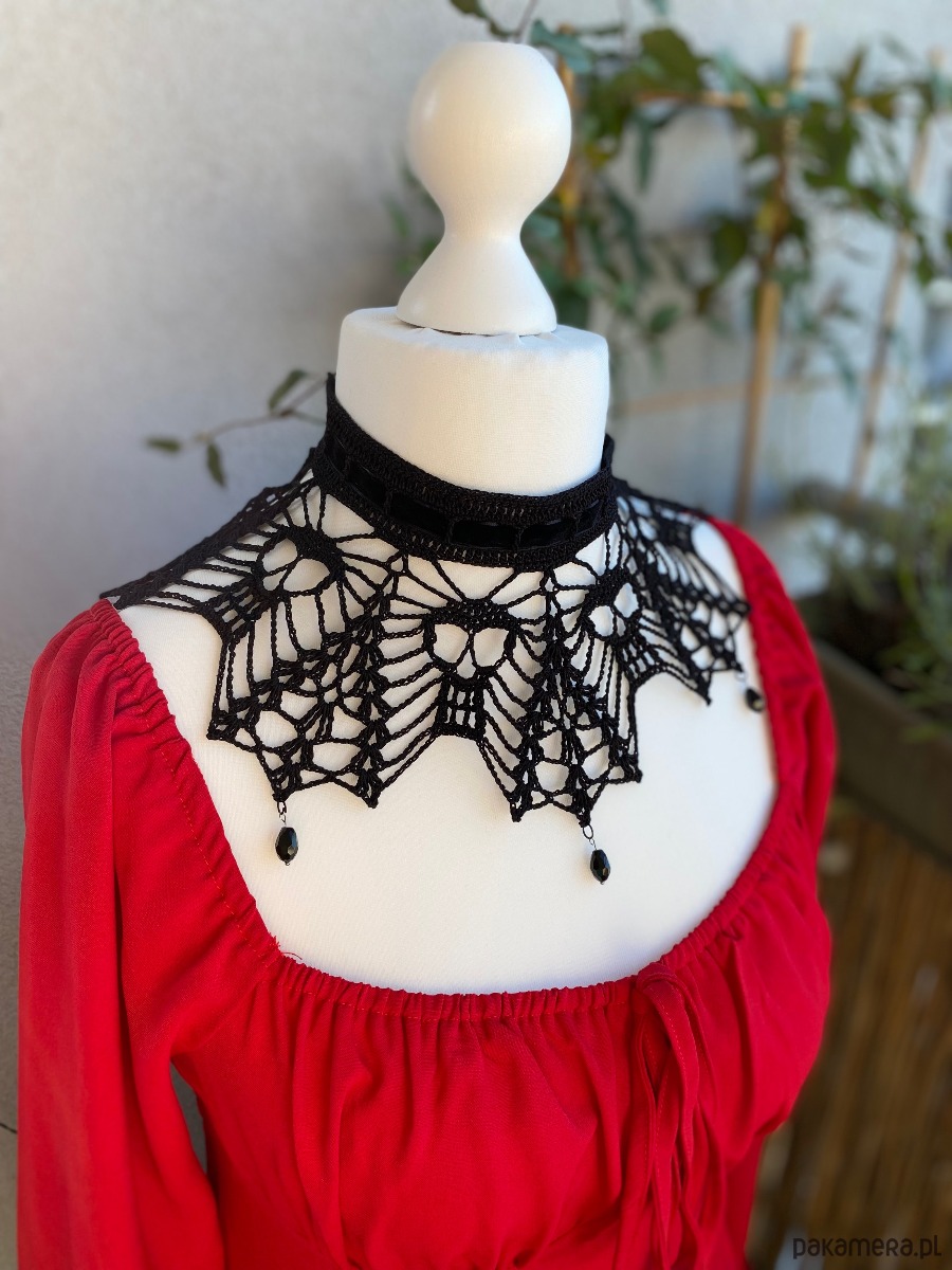 Piękny,gotycki naszyjnik czarny koronkowy, unikatowy,czaszki 💀🖤 nie z sieciówki, niepowtarzalny w mrocznym zmysłowym stylu 🖤🕸️❗❗❗