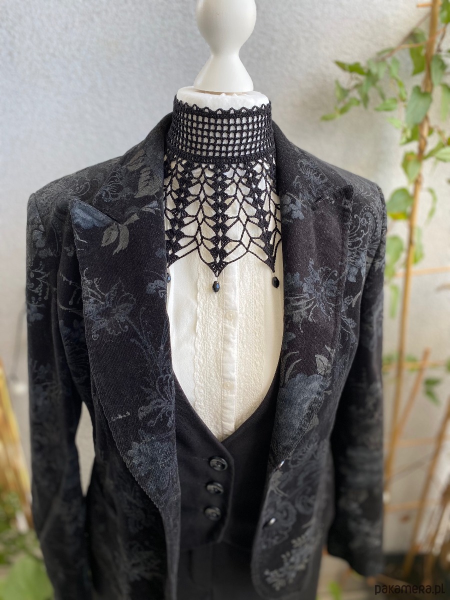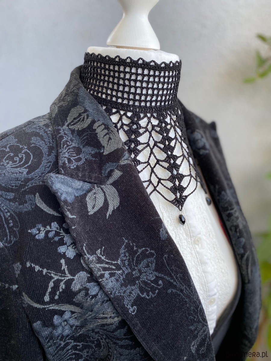 🖤Gotycka wysoka, koronkowa obroża podkreślona tylnym wiązaniem z aksamitnej tasiemki przywołuje skojarzenia z wiktoriańskimi balami, na których szeptano słodkie obietnice i składano serce w ofierze namiętności. Naszyjnik zachwyca nie tylko kunsztem, lecz również niezwykłą wygodą noszenia — idealny zarówno do teatralnych stylizacji, jak i codziennych czarujących akcentów dla miłośniczek estetyki dark romantic.✨🖤