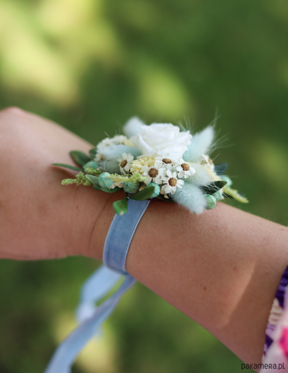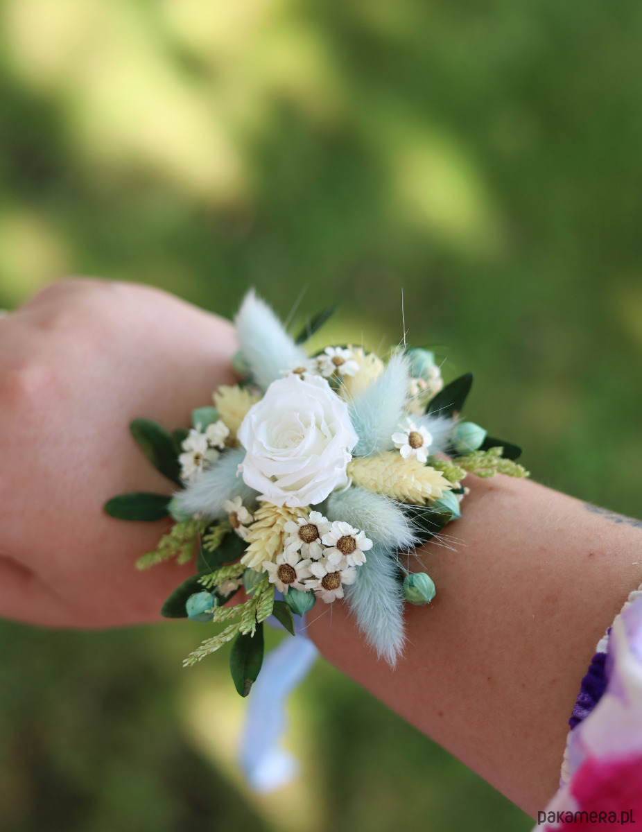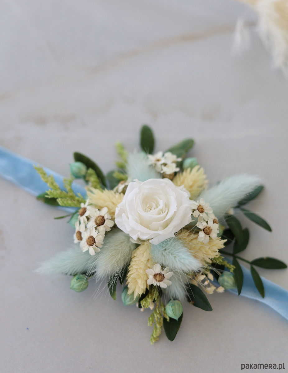 Korsarz na rękę to wyjątkowa ozdoba, która doda elegancji i uroku każdej druhnie. Wykonany z suszonych i stabilizowanych roślin, korsarz ma w swojej centralnej części wieczną różę, która stanowi piękny i trwały akcent.
