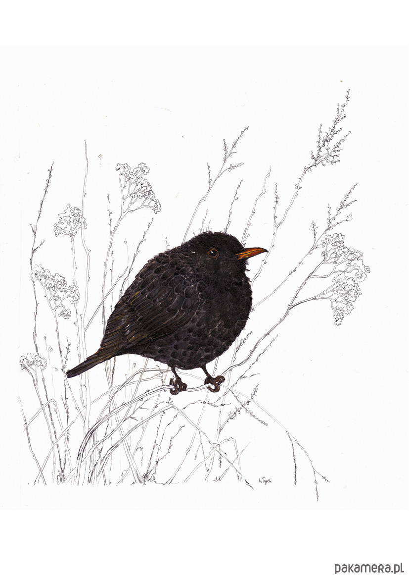 Kos zimowy- wydruk jednej z autorskich ptasich ilustracji inspirowanej światem rodzimej fauny