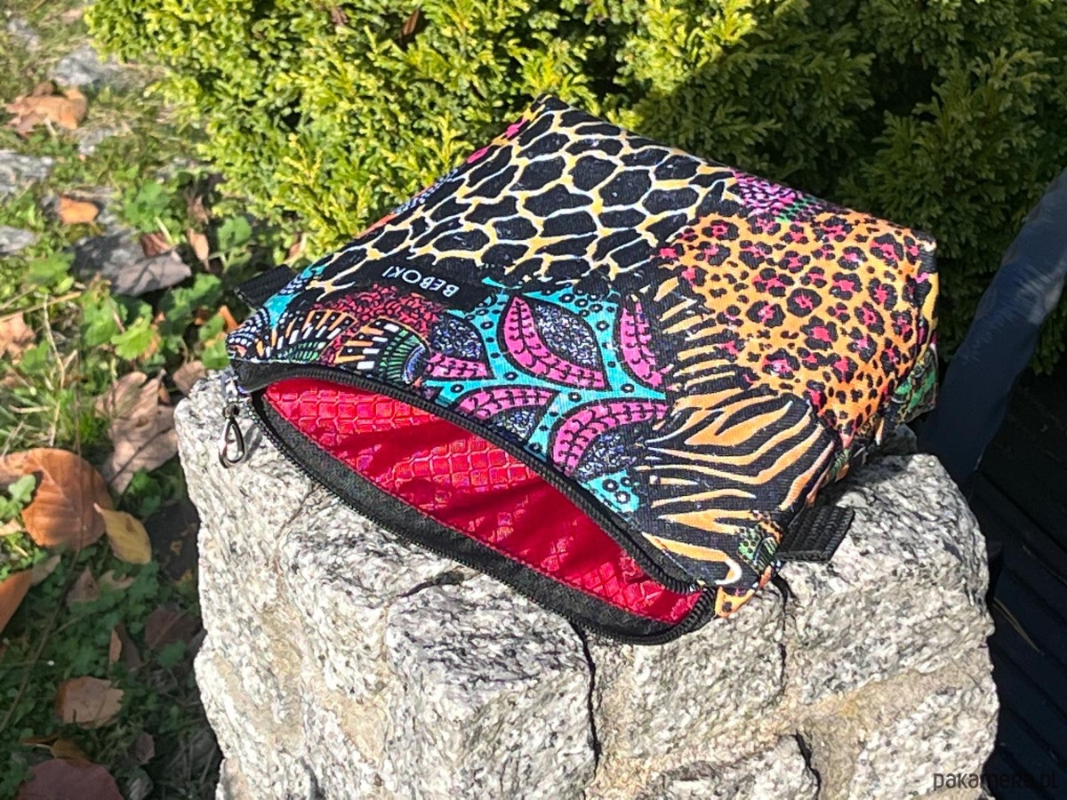 Kosmetyczka BEBOKI to idealne połączenie stylu i funkcjonalności. Wykonana z wodoodpornej tkaniny z kolorowym nadrukiem, z wewnętrzną mocną czerwona podszewką z poliestru – jest trwała, lekka i bardzo łatwa w utrzymaniu czystości. Wystarczy przetrzeć lub wyprać, by znów wyglądała jak nowa!