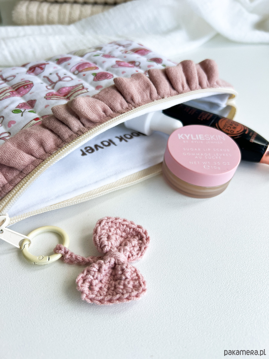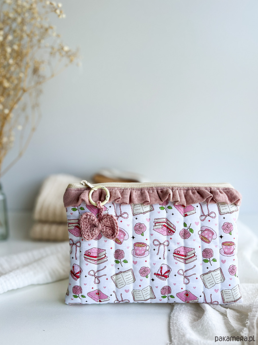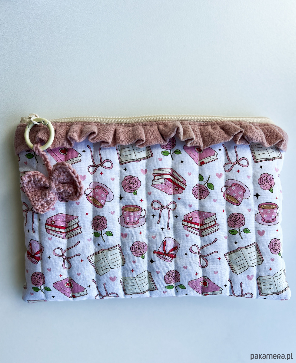 Miękka bawełna, romantyczna falbanka i ręcznie wykonana zawieszka w kształcie kokardki sprawiają, że to nie jest zwykły przedmiot – to coś, co poprawia humor za każdym razem, gdy po nią sięgasz.
