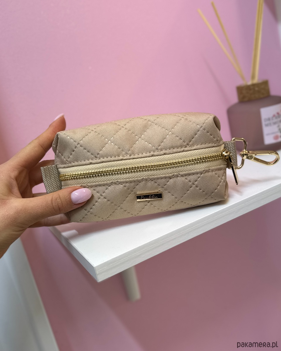 Kosmetyczka damska saszetka dopinana beżowa pikowana wodoodporna