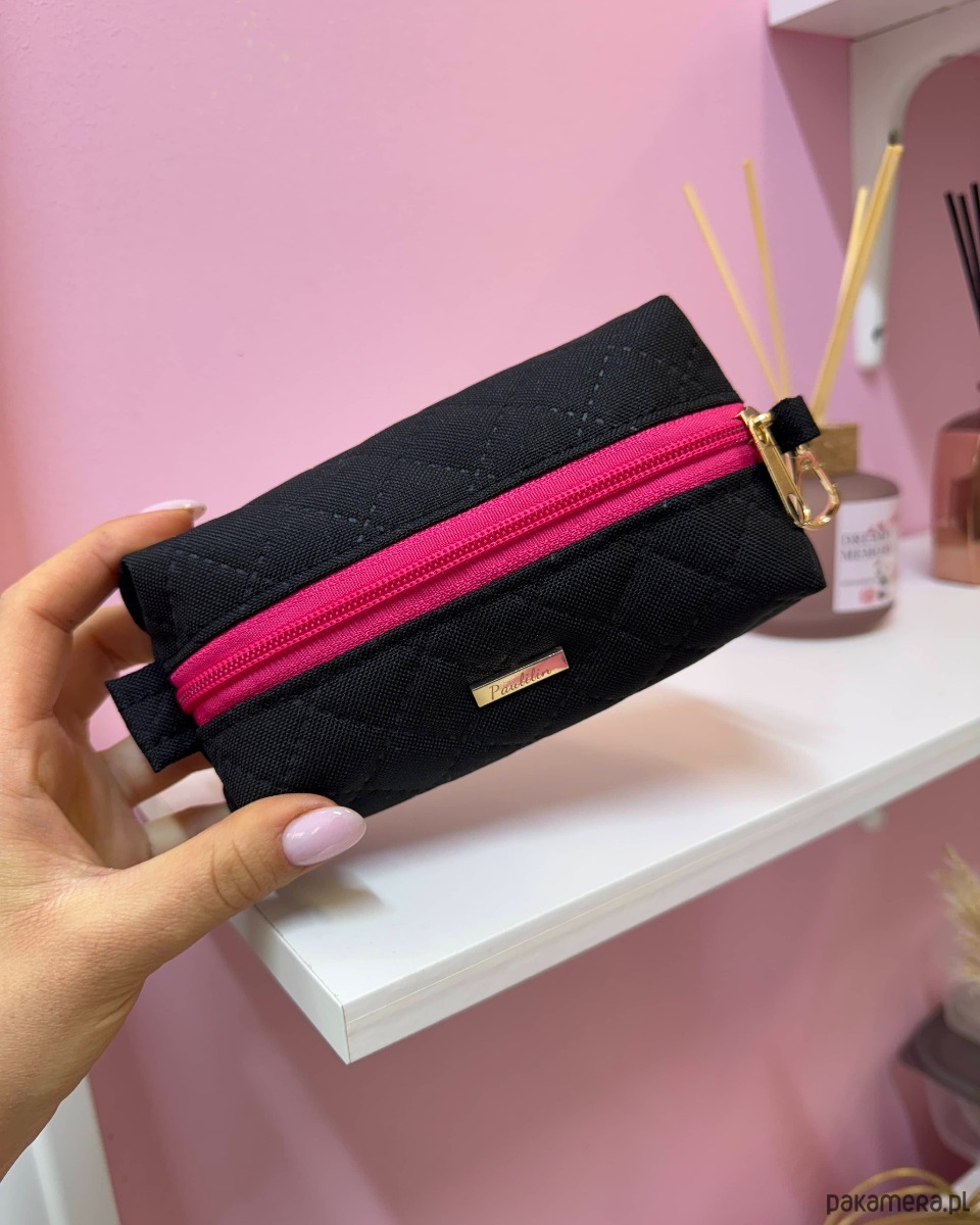 Kosmetyczka damska saszetka dopinana czarna pikowana wodoodporna