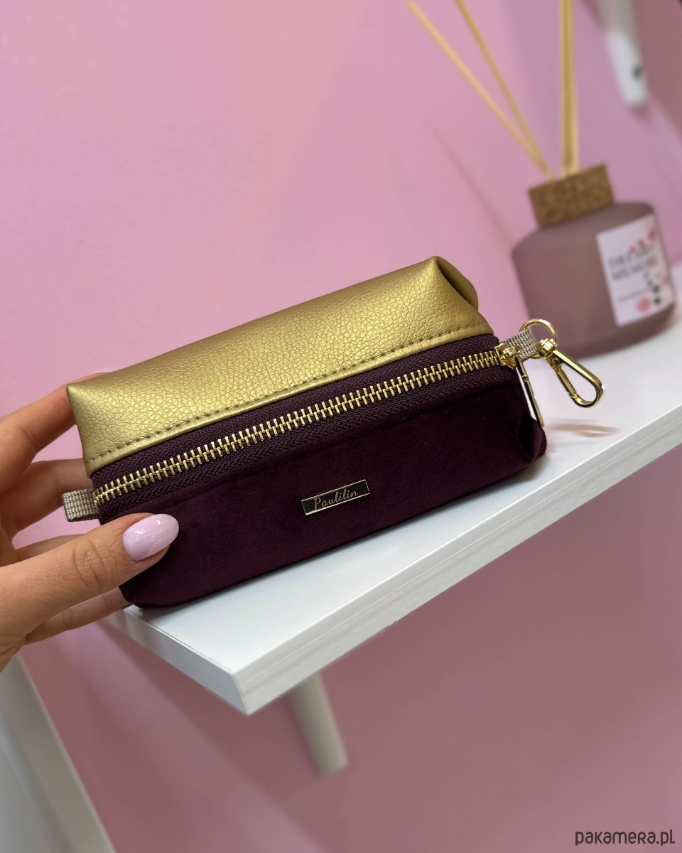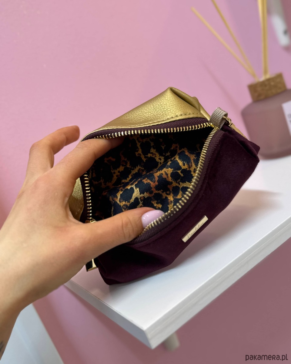 Kosmetyczka damska saszetka dopinana złoto burgundowa