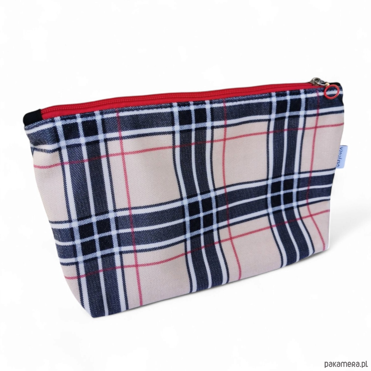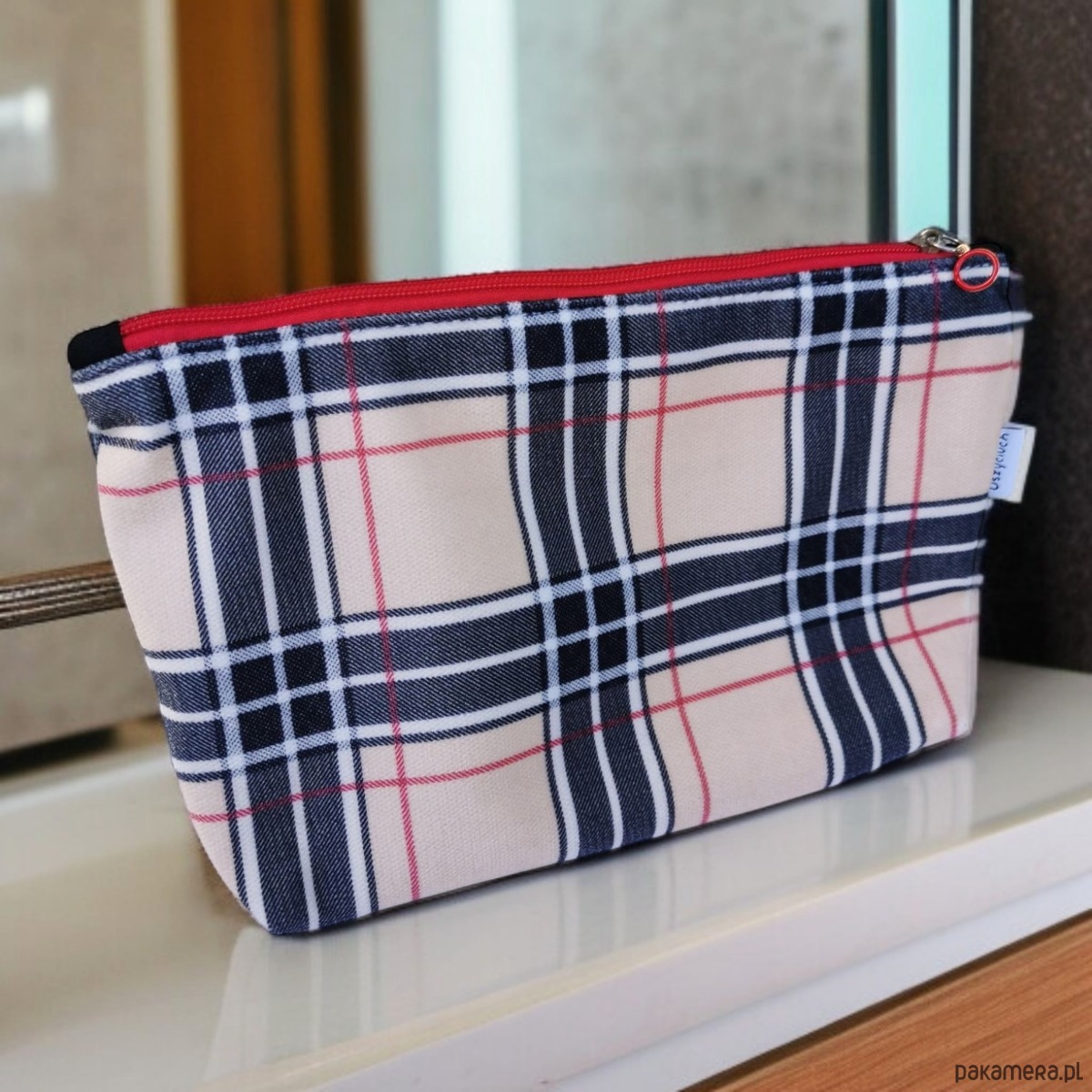 Kosmetyczka damska welurowa kosmetyczka etui do torby kratka