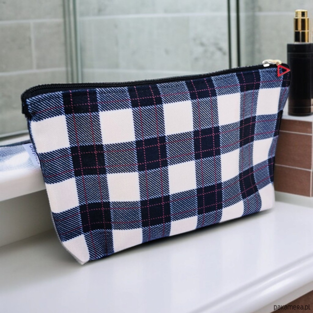 Kosmetyczka welurowa kratka