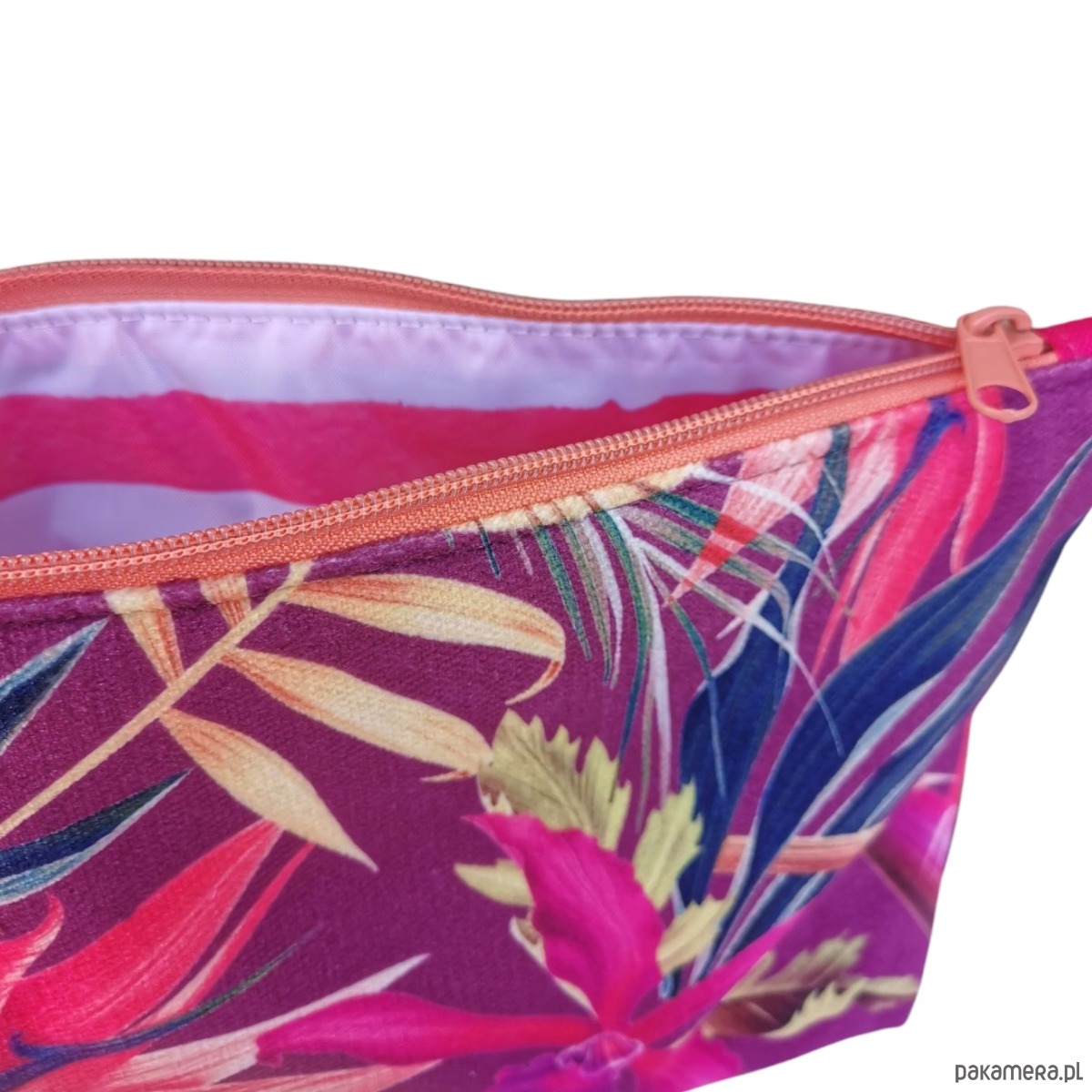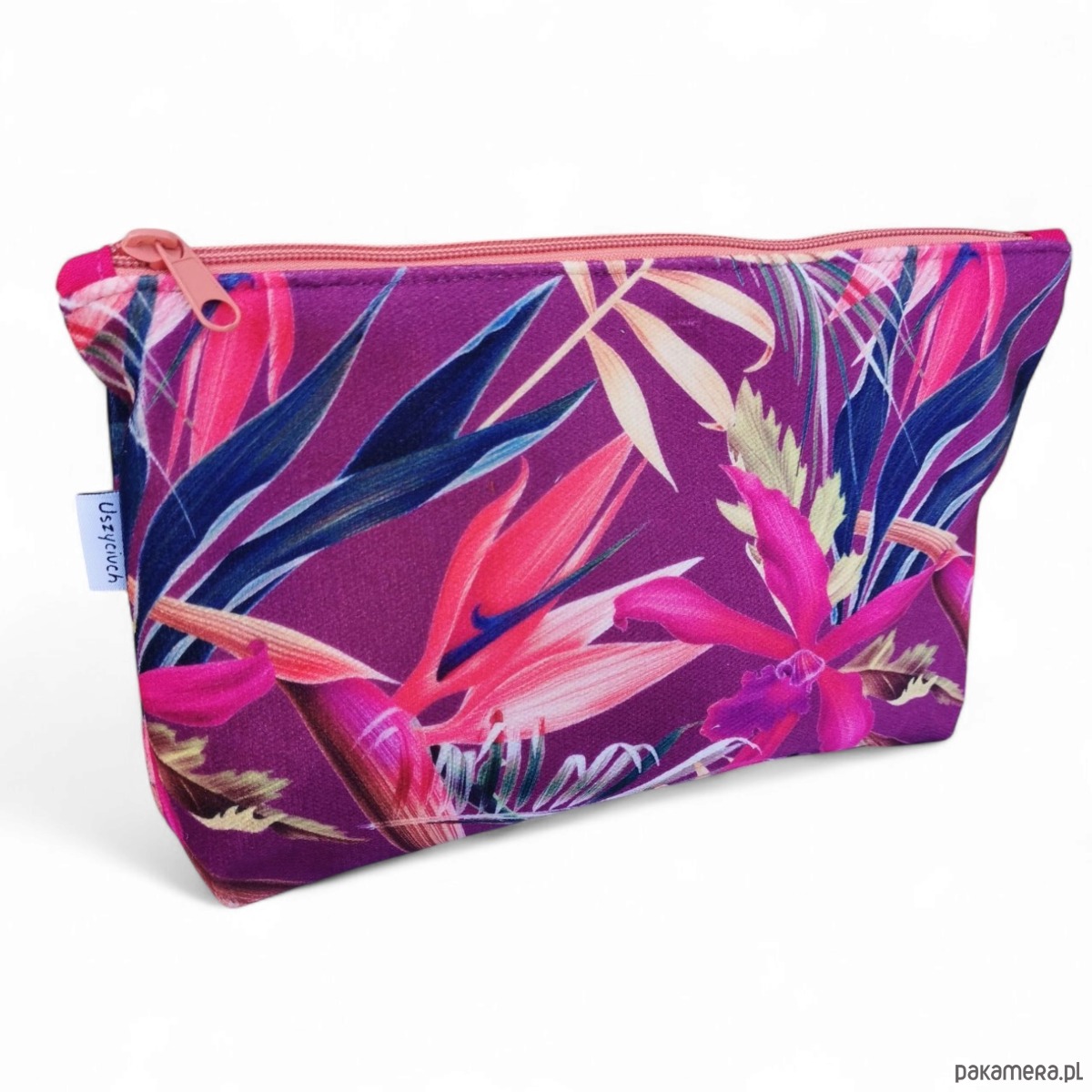 Kosmetyczka damska welurowa kosmetyczka etui do torby kwiaty strelicja