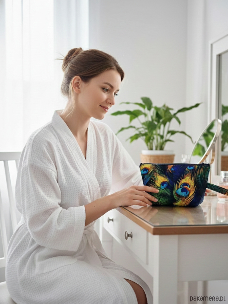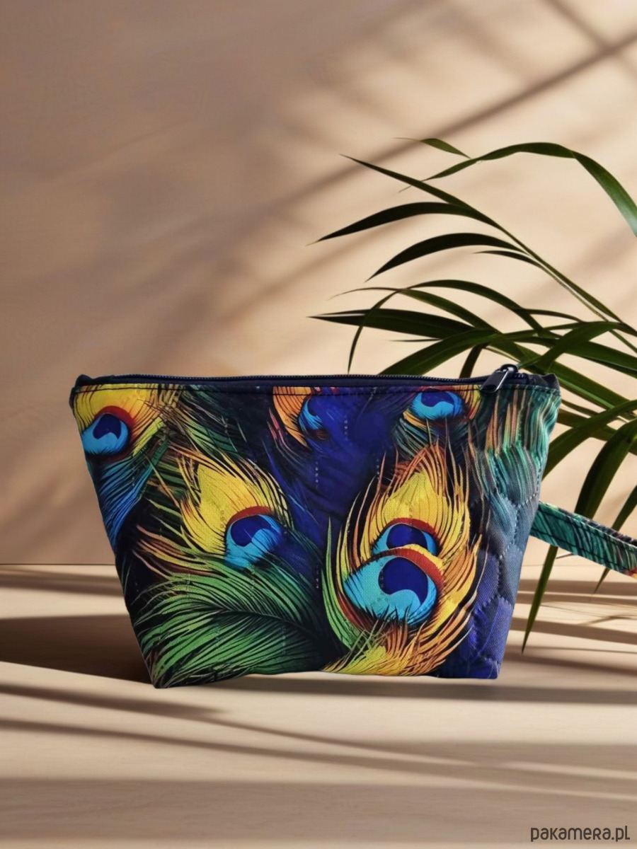 Kosmetyczka z serii Ofelia, zdobiona pięknym wzorem pawich piór. Wykonana z pikowanego wodoodpornego materiału, zapewnia ochronę Twoim kosmetykom przed wilgocią. Wewnątrz znajduje się również wodoodporna podszewka. Ta kosmetyczka to nie tylko stylowy dodatek, ale także doskonały pomysł na prezent.