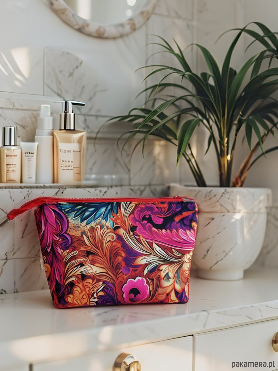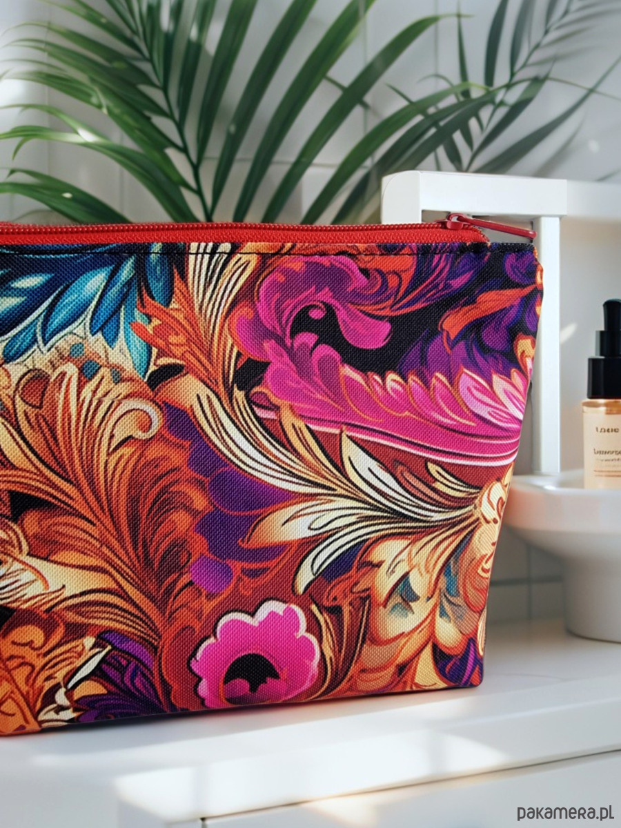 Ta kosmetyczka to prawdziwa petarda kolorów – ornamentowe, wesołe wzory sprawiają, że od razu poprawia się humor.