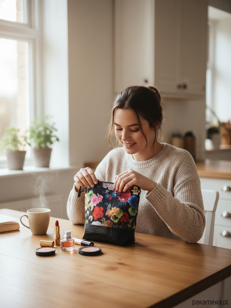 Ta wyjątkowa kosmetyczka to połączenie stylu i praktyczności! Wykonana z luksusowej ekoskóry o wężowym wzorze oraz wodoodpornej tkaniny w kwiaty, jest idealnym rozwiązaniem dla kobiet, które cenią porządek i elegancję.