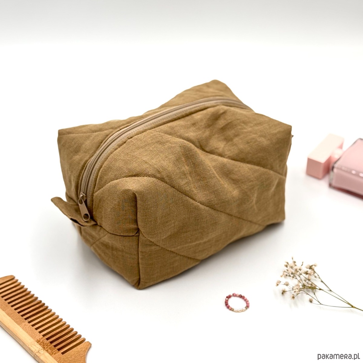 Pikowana cienką warstwą włókniny, dzięki czemu zachowuje kształt, a jednocześnie pozostaje lekka i miękka w dotyku. Pojemna, idealna do przechowywania kosmetyków, akcesoriów lub drobiazgów w podróży i na co dzień.