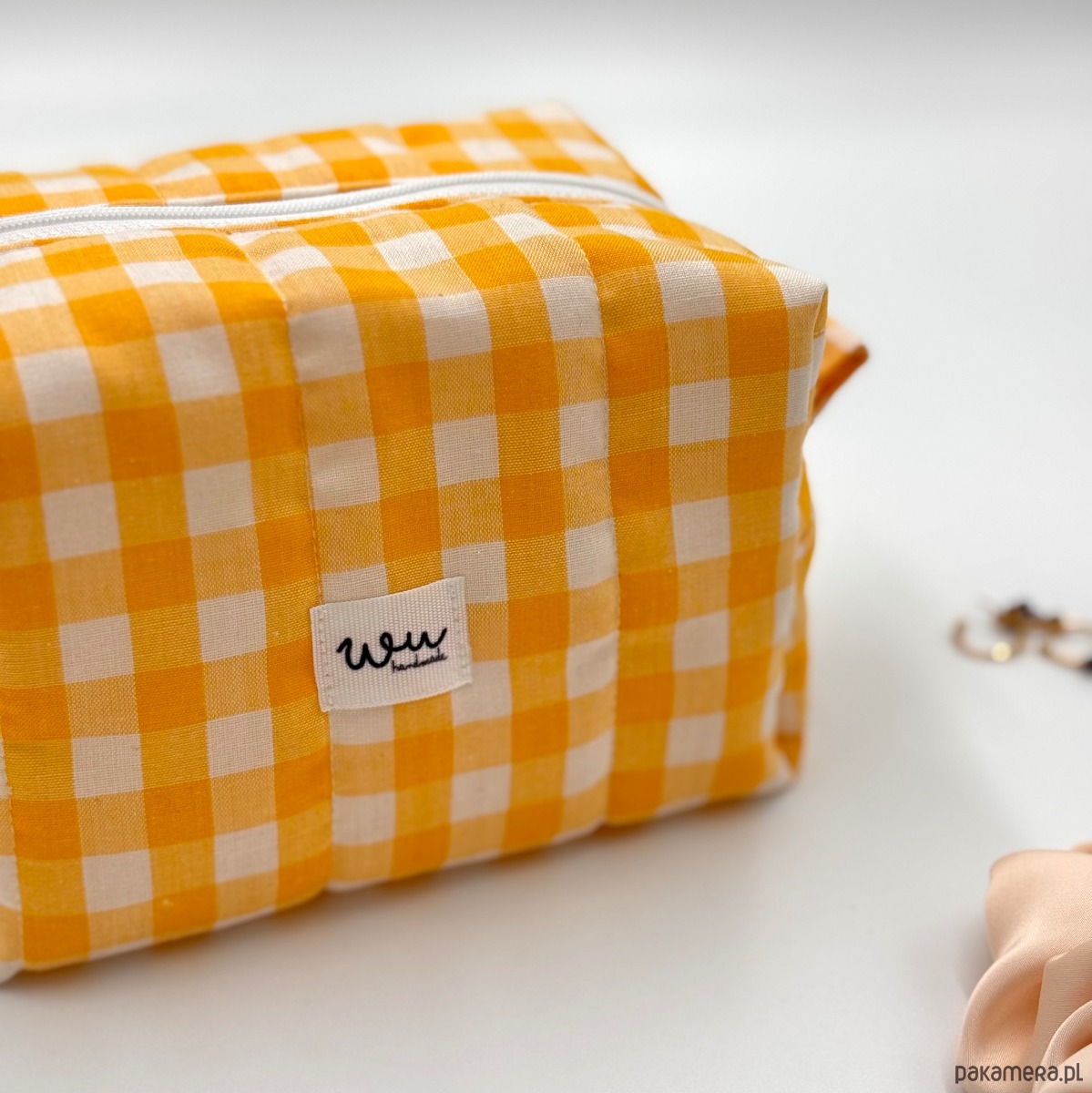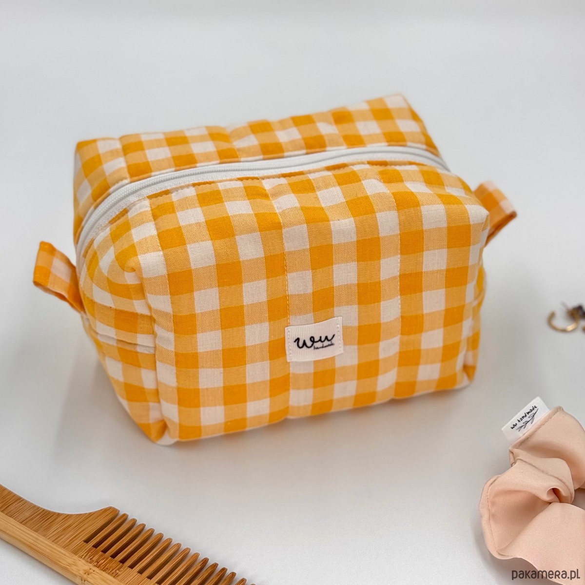 Delikatnie pikowana cienką warstwą włókniny, dzięki czemu dobrze trzyma kształt, a jednocześnie pozostaje miękka i lekka. W środku posiada bawełnianą podszewkę. Pojemna, praktyczna i idealna na kosmetyki, akcesoria lub drobiazgi — w podróży i na co dzień.