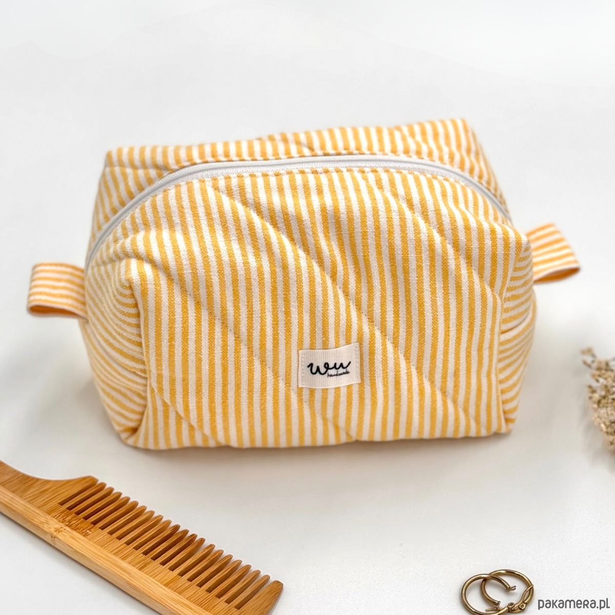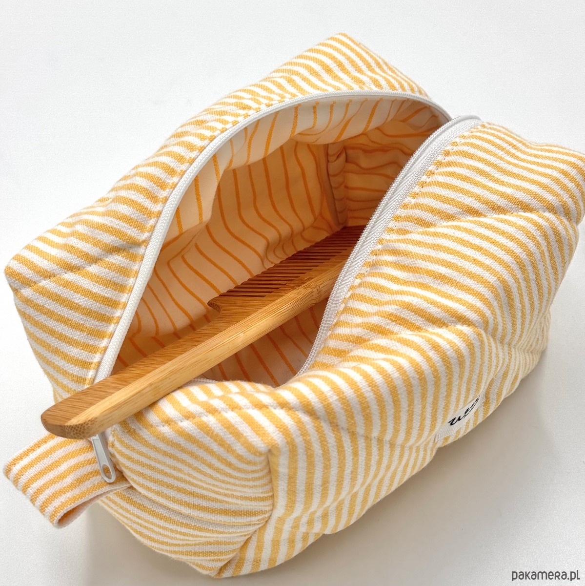 Delikatnie pikowana cienką warstwą włókniny, dzięki czemu dobrze trzyma kształt, a jednocześnie pozostaje miękka i lekka. Pojemna, praktyczna i idealna na kosmetyki, akcesoria lub drobiazgi — w podróży i na co dzień.