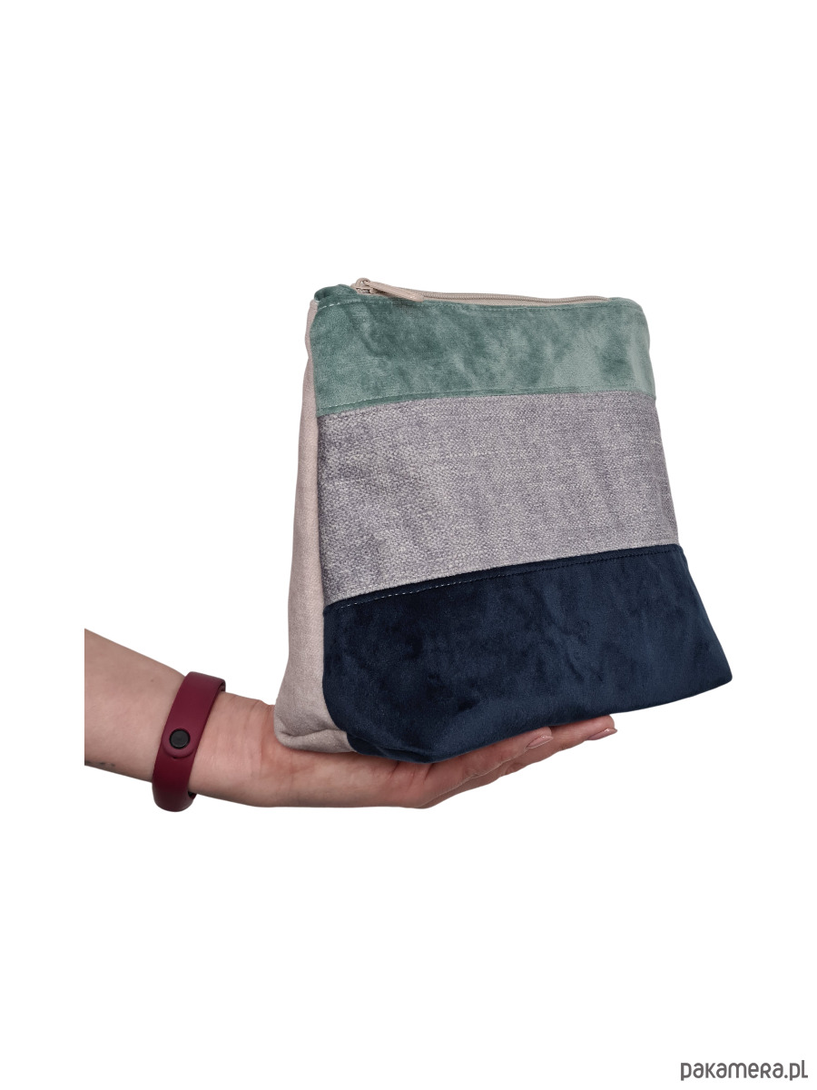 Kosmetyczka została uszyta z materiałów z drugiego obiegu - głównie ścinków tapicerskich, a także fragmentów pościeli i koszul. Tkaniny tapicerskie sprawiają, że kosmetyczka jest solidna i odporna na intensywne użytkowanie. Zamiast zostać odrzucone, zostały przekształcone w trwały i funkcjonalny dodatek. Każdy egzemplarz to inne zestawienie tkanin i kolorów, dzięki czemu jest naprawdę jedyny w swoim rodzaju.