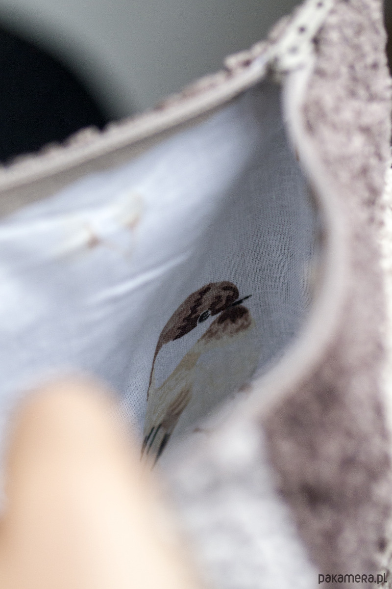 Kosmetyczka jest zapinana na suwak, w środku bawełniana podszewka.