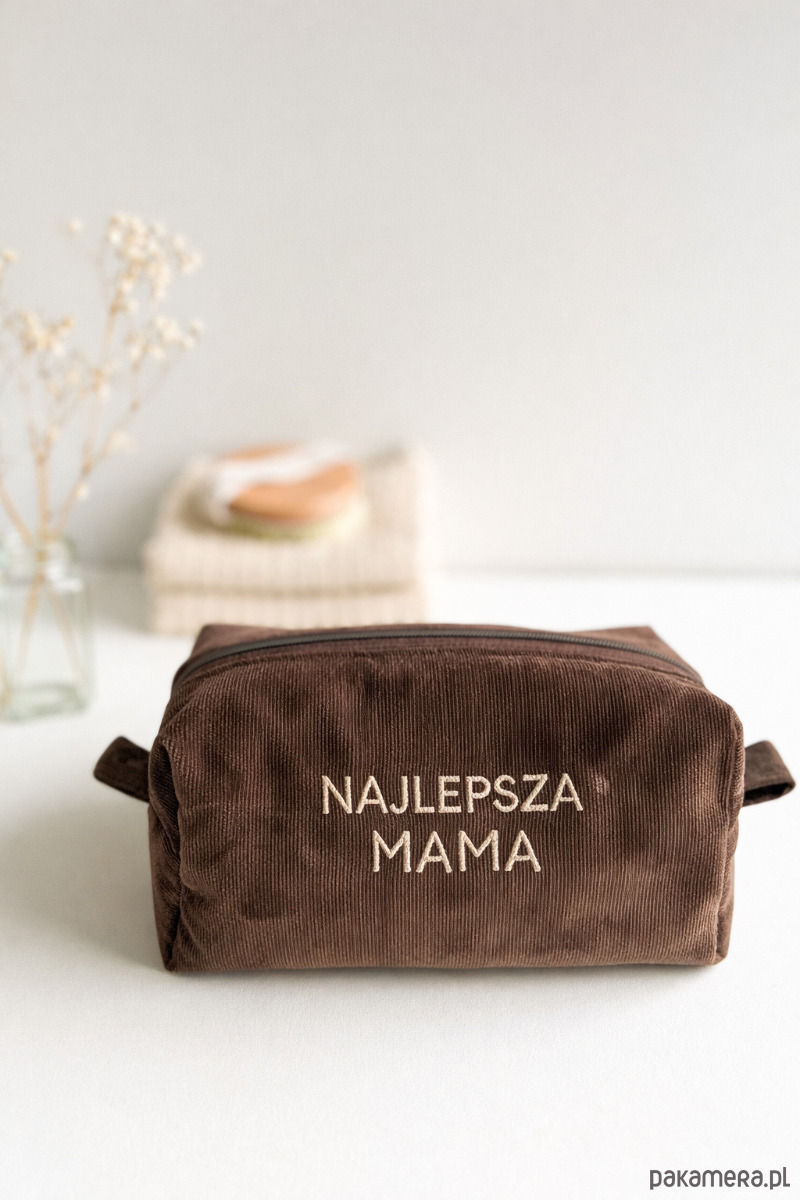 Miękka, sztruksowa kosmetyczka stworzona z myślą o kimś naprawdę wyjątkowym. Delikatna w formie, a jednocześnie praktyczna — idealna na codzienne drobiazgi, kosmetyki czy rzeczy, które warto mieć zawsze pod ręką.