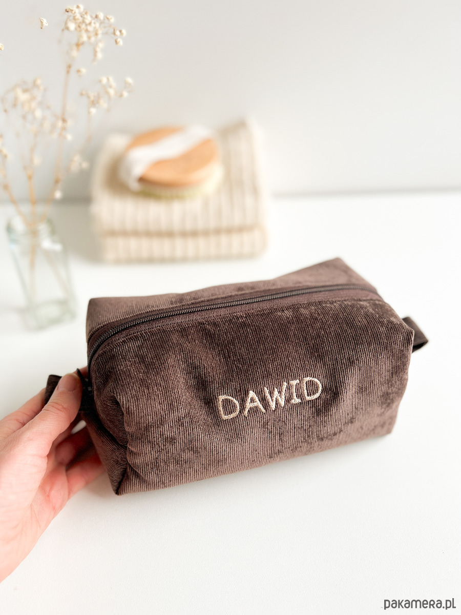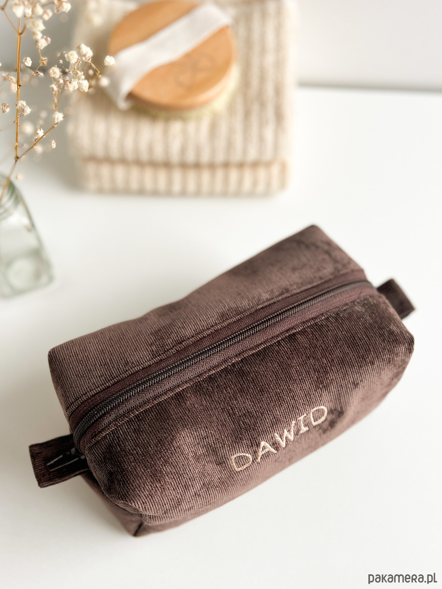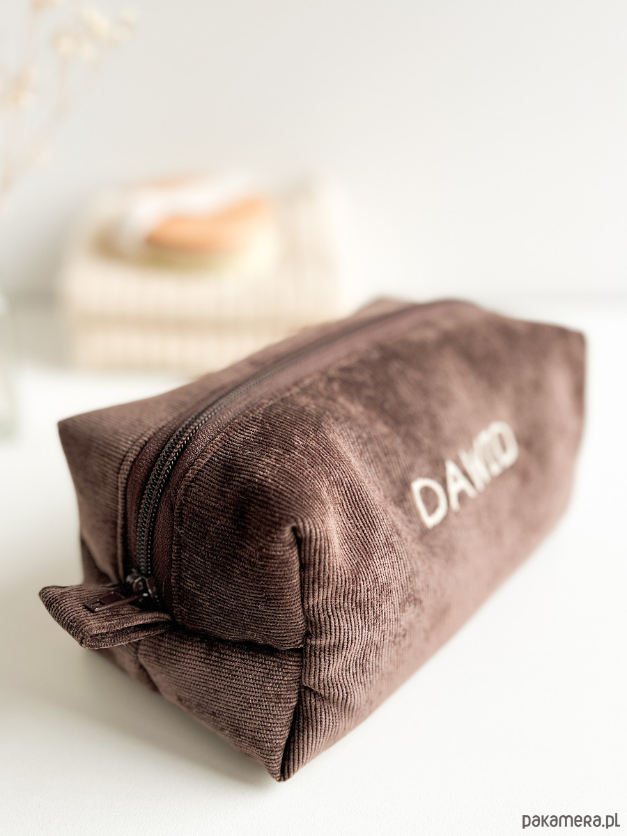 Miękka, ręcznie wykonana kosmetyczka z personalizowanym haftem — idealna na co dzień i w podróży.