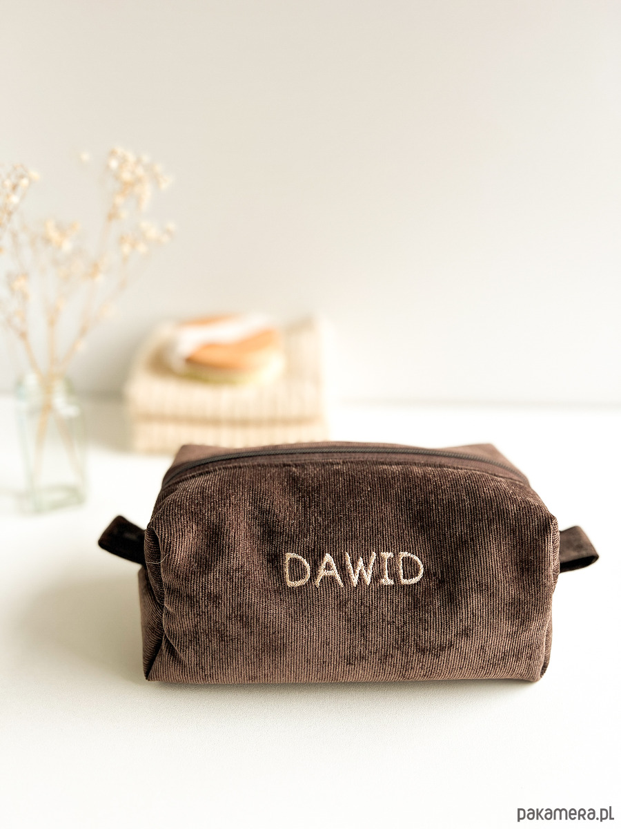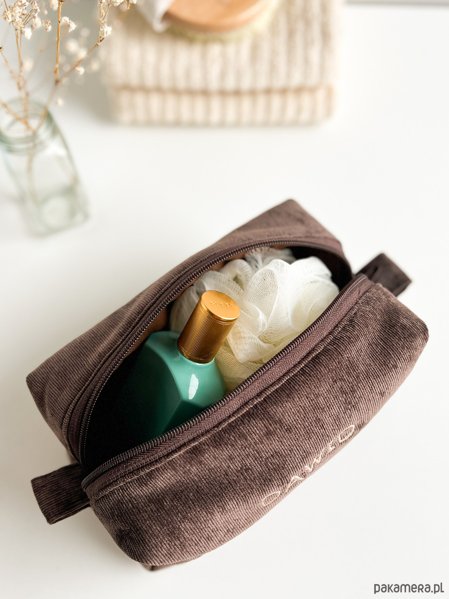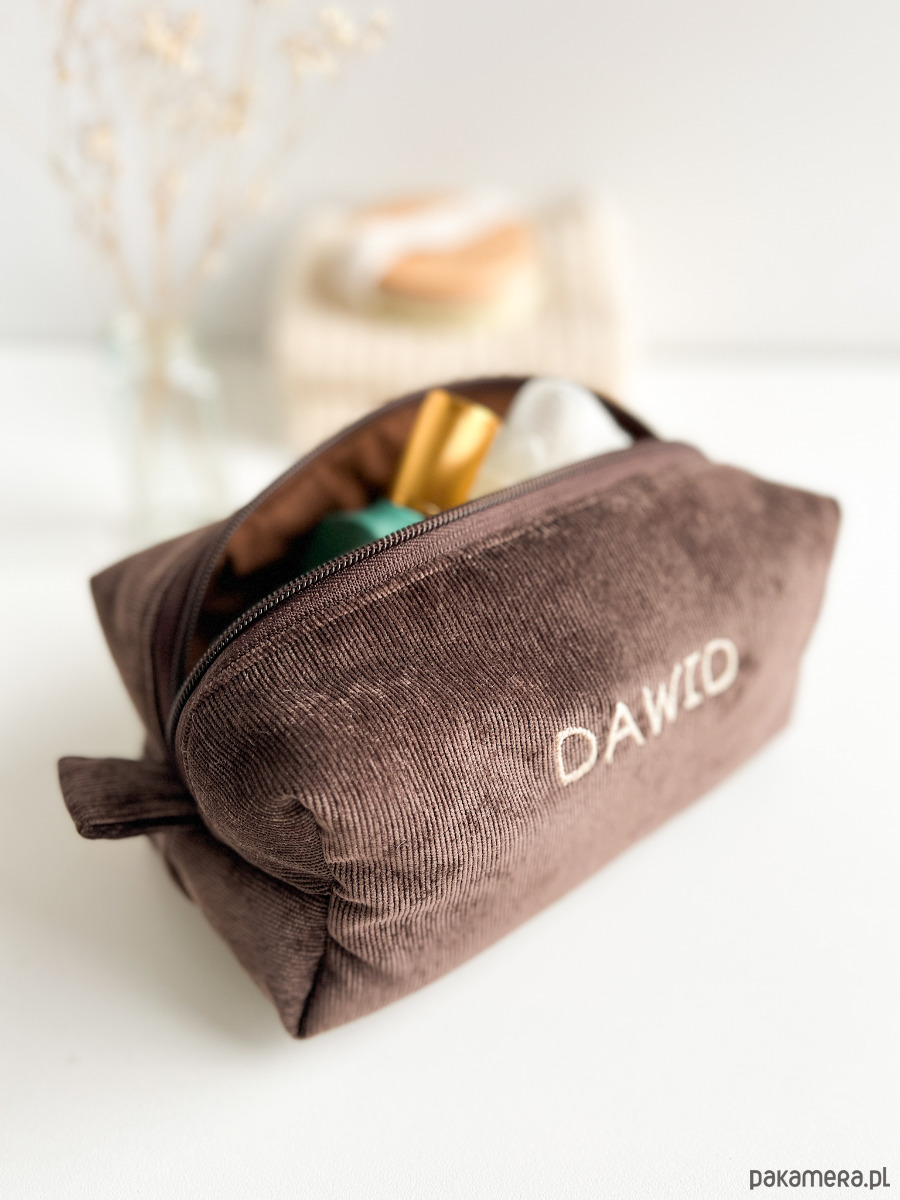 Miękka, ręcznie wykonana kosmetyczka z personalizowanym haftem — idealna na co dzień i w podróży.