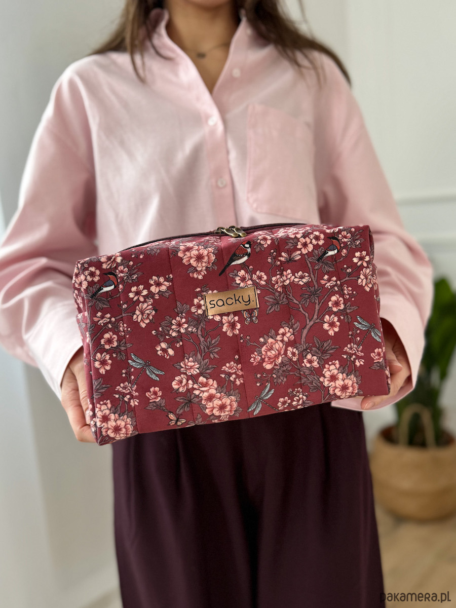 Kosmetyczka pikowana sakura to doskonały wybór na praktyczny prezent dla mamy, babci, przyjaciółki.