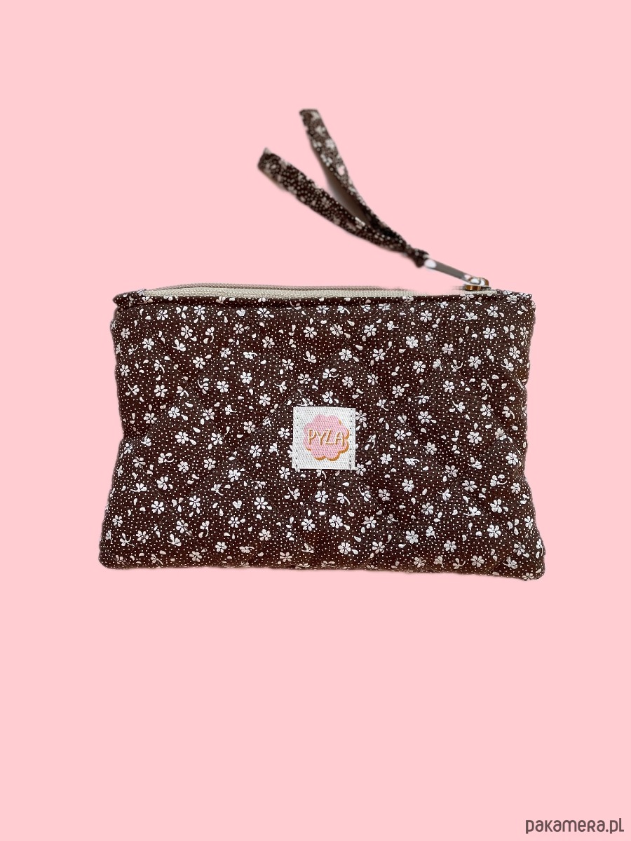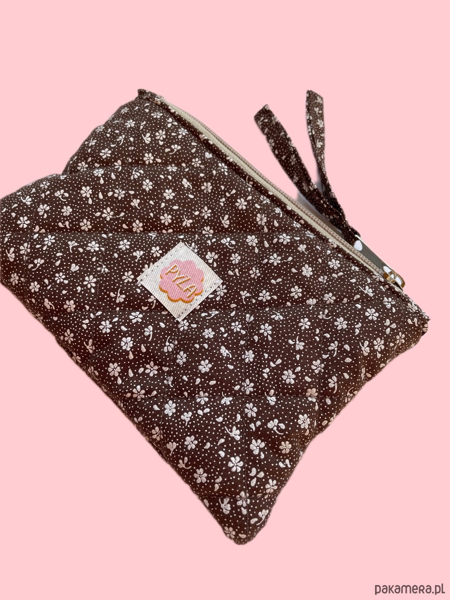 Kosmetyczka pikowana w kwiatki brązowa mała