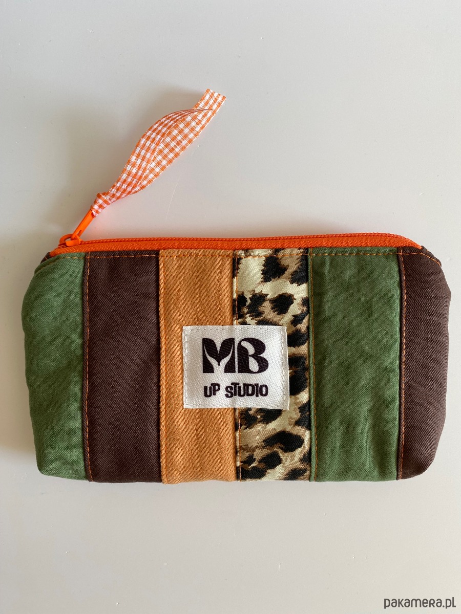 Kosmetyczka saszetka mała patcworkowa, pikowana. Piękne połączenie brązu , zieleni , pomarańczy i panterki tworze ciekawa kompozycję. Kosmetyczka na codzień lub dla specjalnej okazji, na drobne niezbędne rzeczy: pomadkę, gumki, spinki lub klucze.