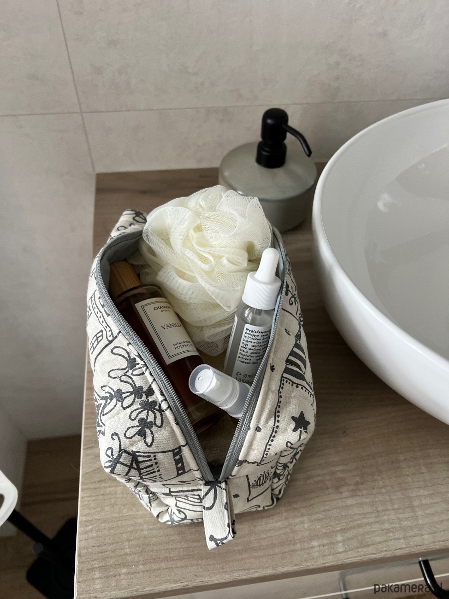 Kosmetyczka na makijaż - pomieści pędzle, tusz, pomadki i inne drobiazgi.