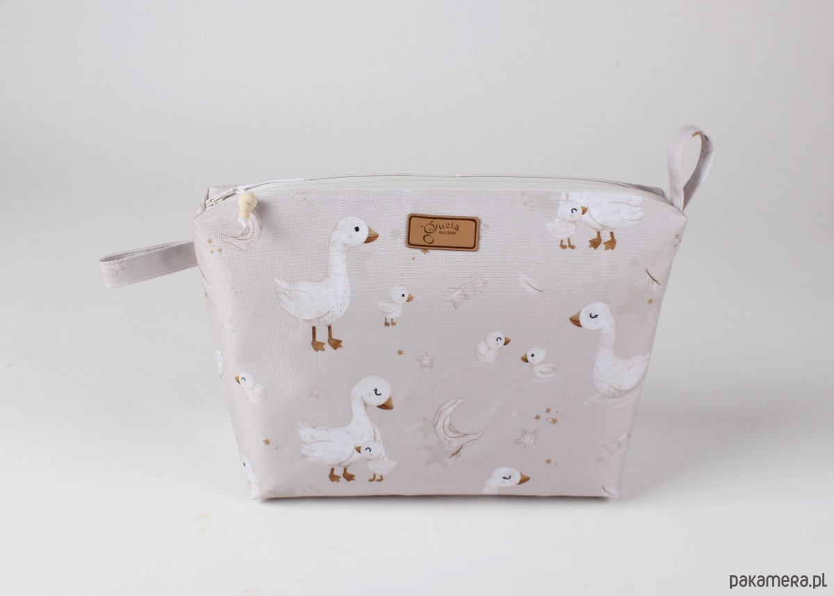 Praktyczna i urocza kosmetyczka uszyta z wodoodpornego materiału w gąski. Łączy funkcjonalność z lekkim, przyjemnym designem, który świetnie sprawdzi się zarówno na co dzień, jak i w podróży.