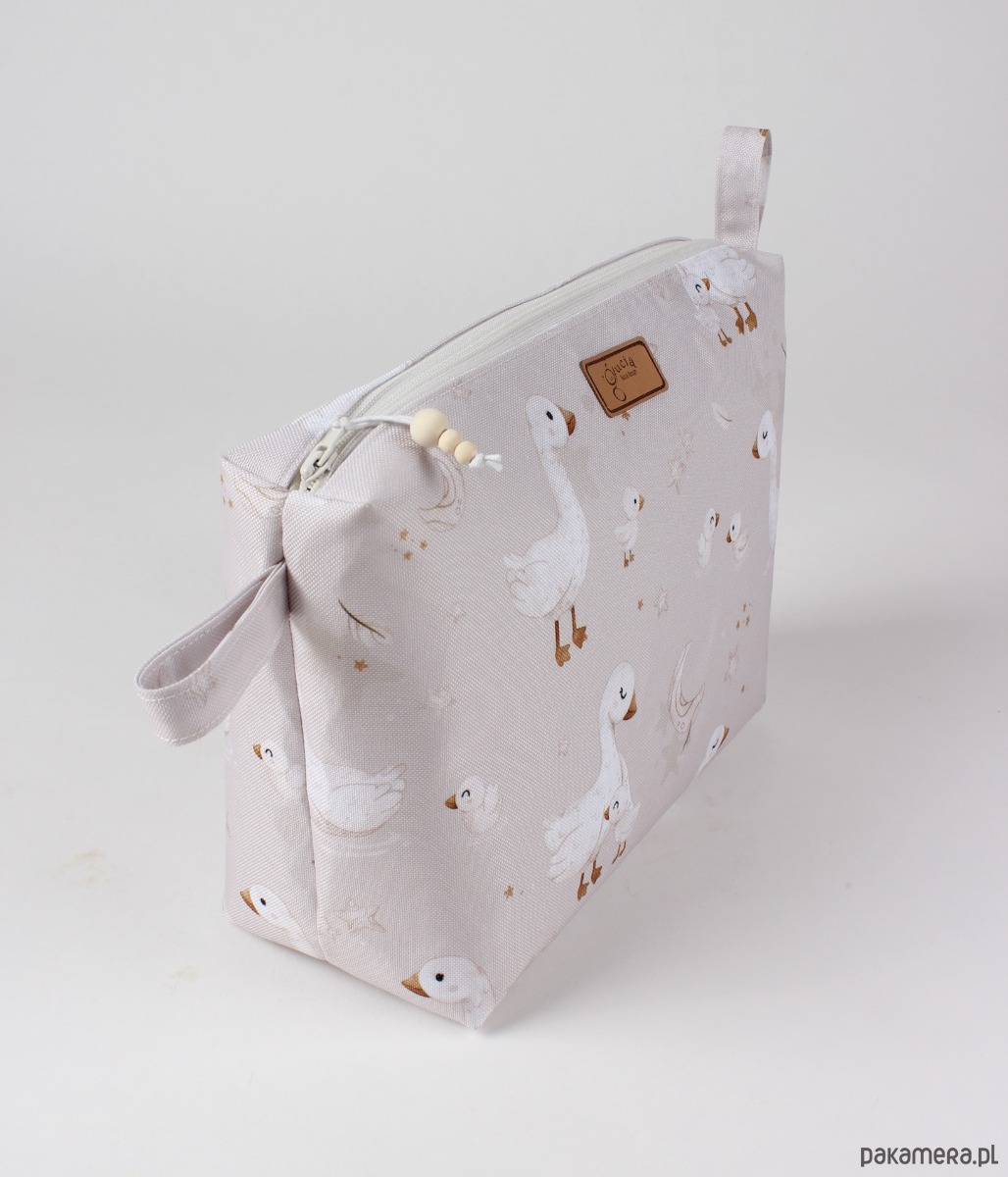 Dzięki większemu rozmiarowi bez problemu pomieści kosmetyki, akcesoria, produkty pielęgnacyjne czy dziecięce drobiazgi. Wodoodporna tkanina chroni zawartość przed wilgocią i zabrudzeniami, co czyni ją idealnym towarzyszem wyjazdów, nocowanek i codziennej organizacji.