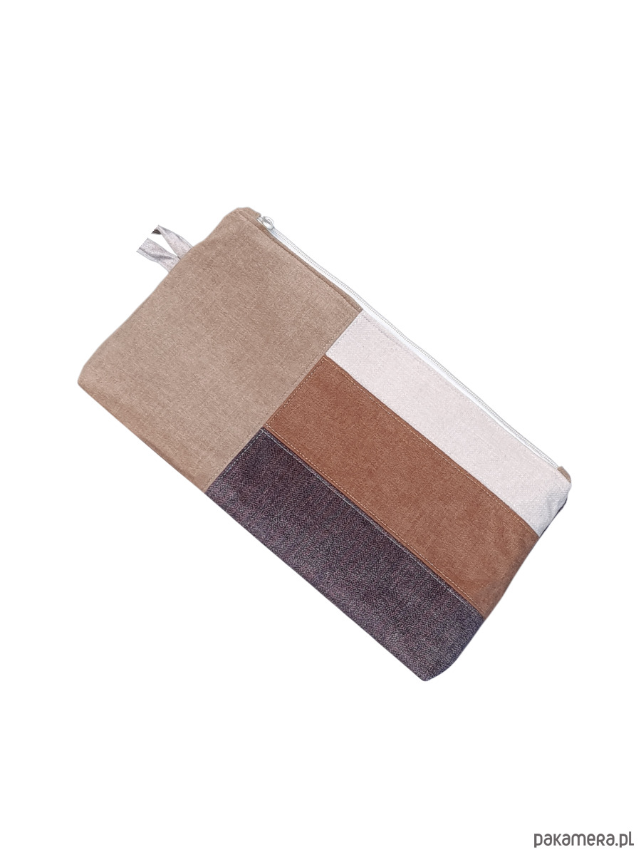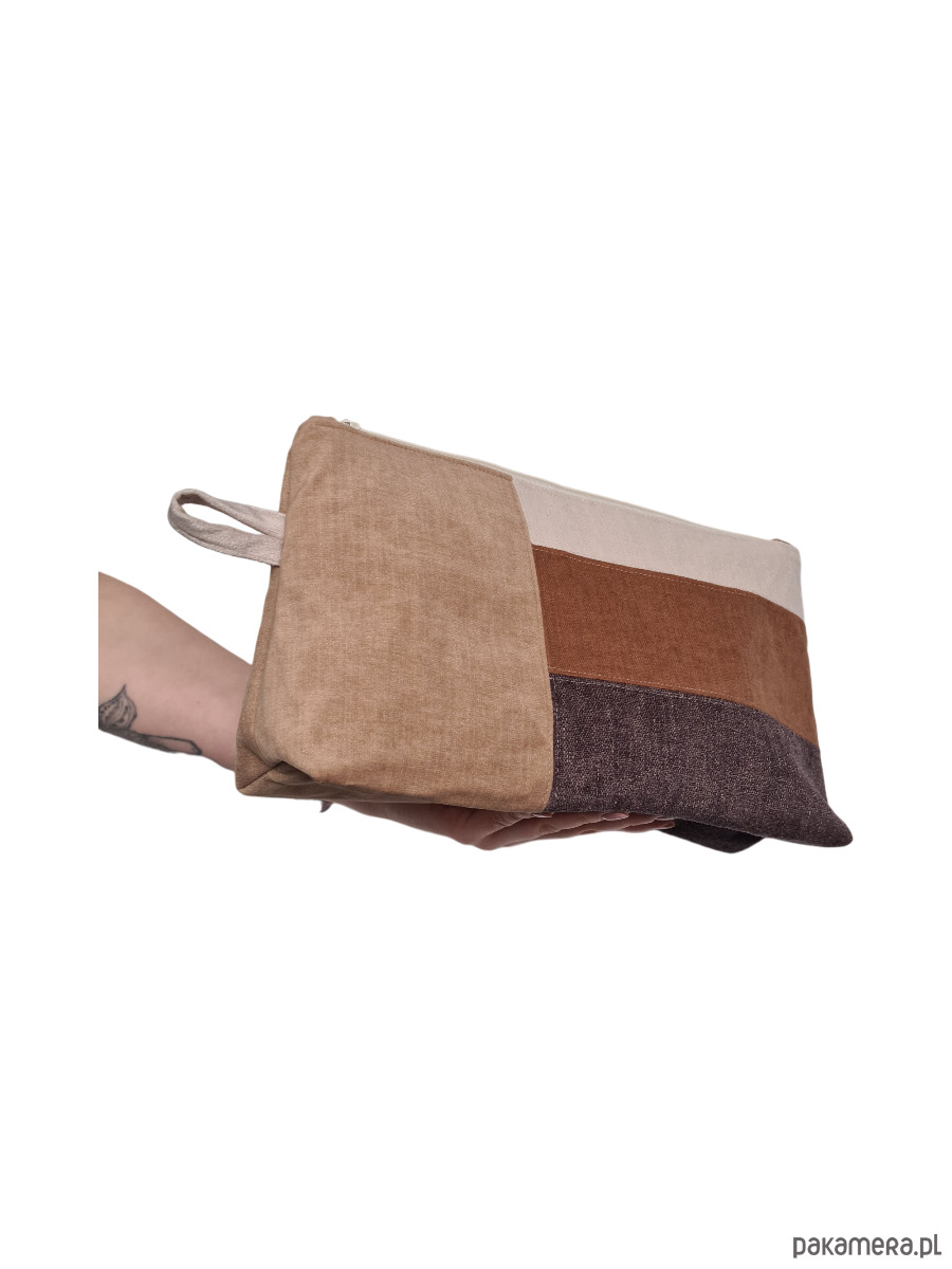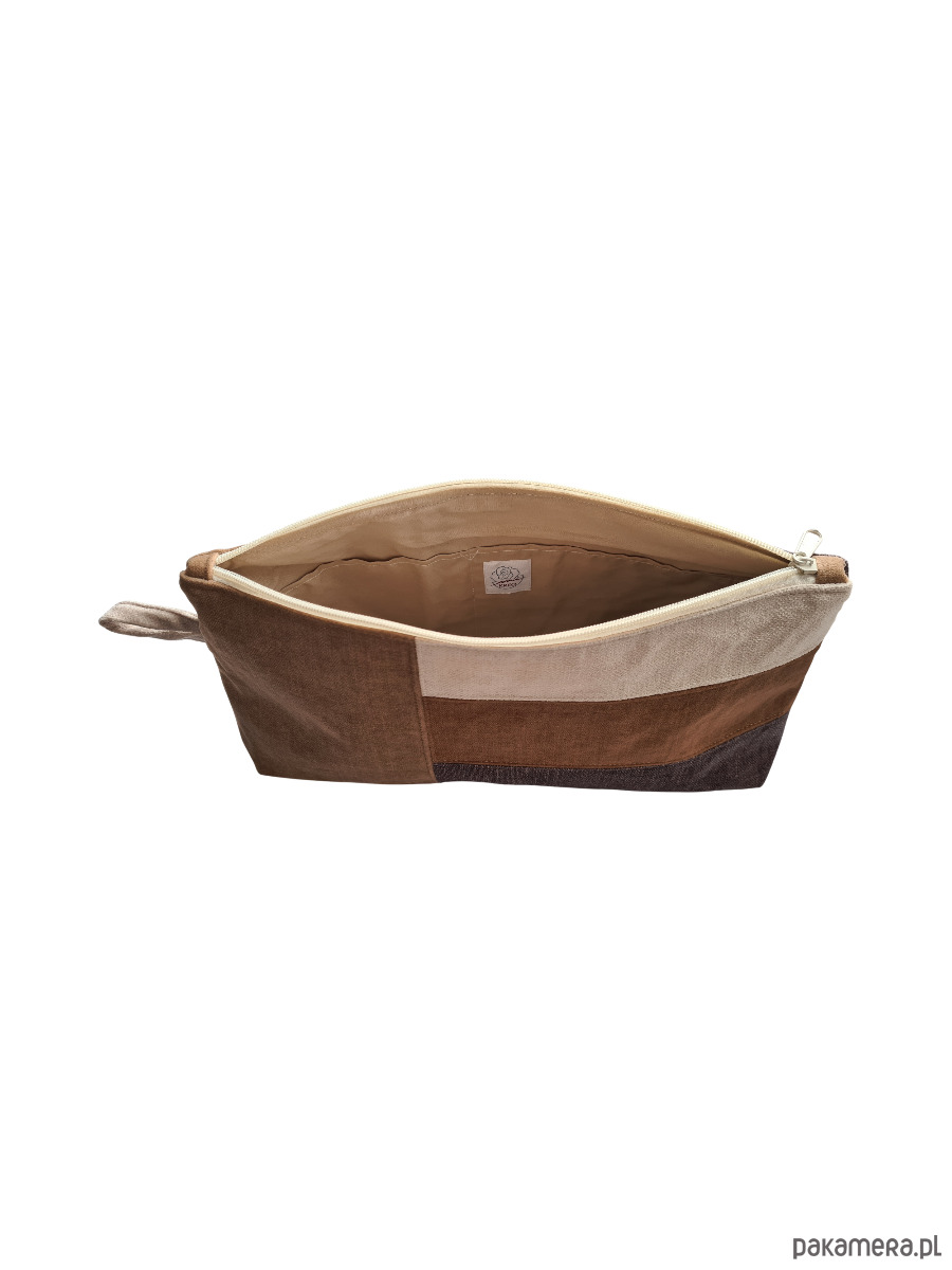 Kosmetyczka została uszyta z materiałów z drugiego obiegu - głównie ścinków tapicerskich, a także fragmentów pościeli i koszul. Tkaniny tapicerskie sprawiają, że kosmetyczka jest solidna i odporna na intensywne użytkowanie. Zamiast zostać odrzucone, zostały przekształcone w trwały i funkcjonalny dodatek. Każdy egzemplarz to inne zestawienie tkanin i kolorów, dzięki czemu jest naprawdę jedyny w swoim rodzaju.