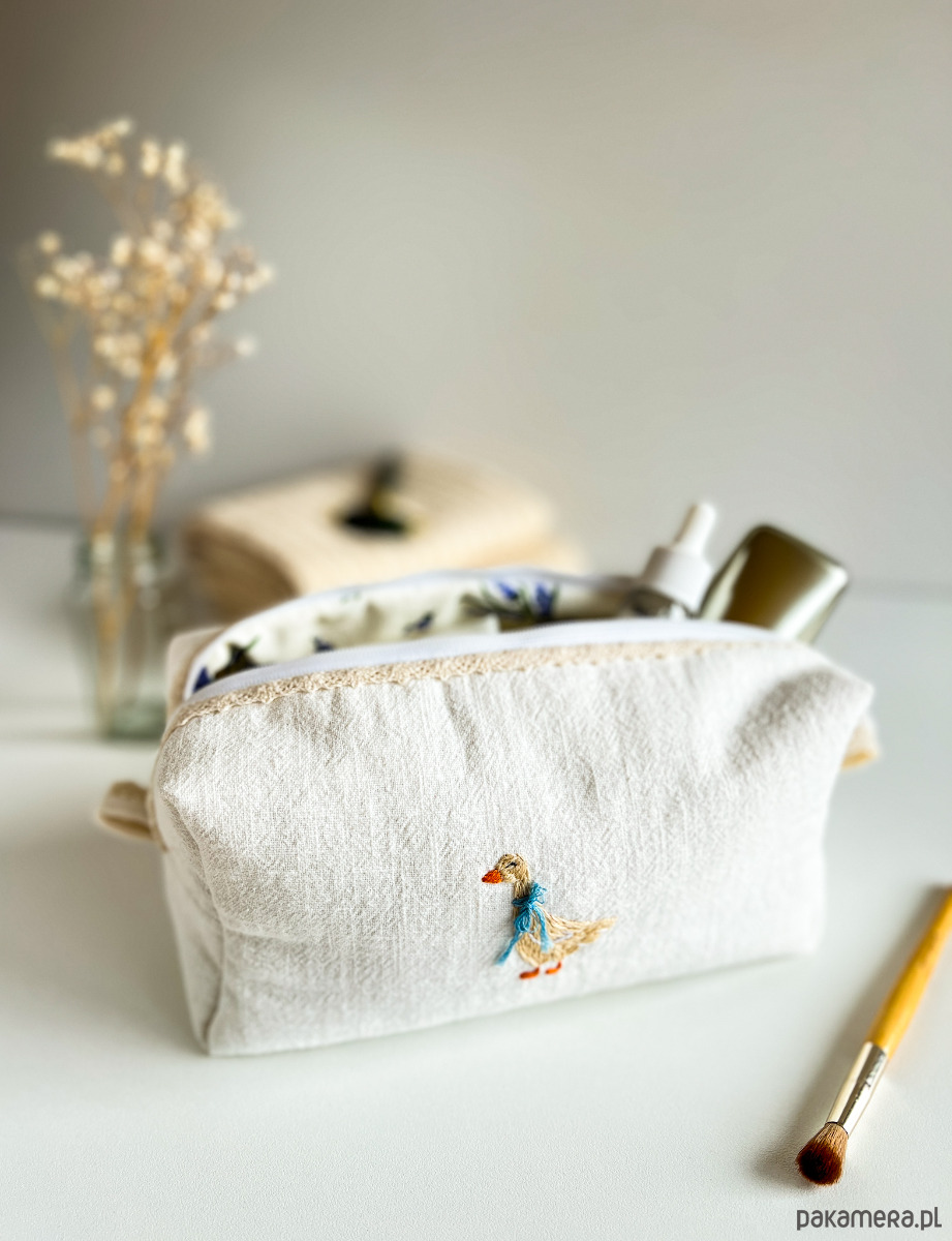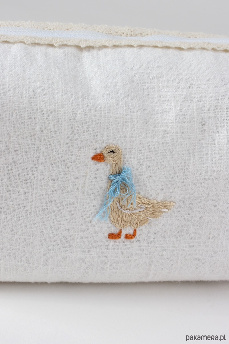 Kosmetyczka z ręcznym haftem gąski
